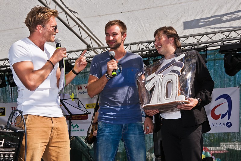 Kožíškovi došla slova ve chvíli, kdy moderátoři glosovali, že většina obcí má krám, kostel, hospodu nebo prasečák ale jenom v Líbeznicích mají vlastní divadlo. „Ten prasečák máte u mě“, vyhrožoval potom moderátorům kouzelník. Zmizet je ale nakonec nenechal a raději dětem objevil velký kouzelnický perníkový dort. „Tak a teď ještě tutově řeknou, že strejda kouzelník rozdává dětem v zákulisí „perník“, smál se Pavel Kožíšek. Modelka Martina Dvořáková si chtěla vyzkoušet jízdu na velbloudovi. To se jí stalo málem osudným. „Pavel mě chtěl ukázat, co je tady všechno letos za atrakce. Jít ale s velbloudem okolo jeviště právě v okamžiku, když si bubeník dělal zvukovou zkoušku, nebyl od šéfa nejlepší nápad. Ještě, že jsem od koní zvyklá se udržet v sedle“, komentovala jízdu na splašeném velbloudovi sympatická Martina, která v kouzelnickém divadle vystupuje už osmý rok. Druhá kouzelnice Hanka Mašlíková popřála tentokrát principálovi na dálku z Turecka, kde je právě se svým přítelem reprezentačním fotbalistou Michalem Kadlecem. „Pavlovi jsem se omluvila, byl to jediný možný termín, kdy jsem společně s rodiči mohla za Michalem odjet. Pavla ale proklínám, protože poslal Michalovi několik kouzel a místo toho, aby se mě tady Michal věnoval, tak pořád jenom trénuje kouzlíčka a čaruje,“ stěžuje se Hanka Mašlíková.