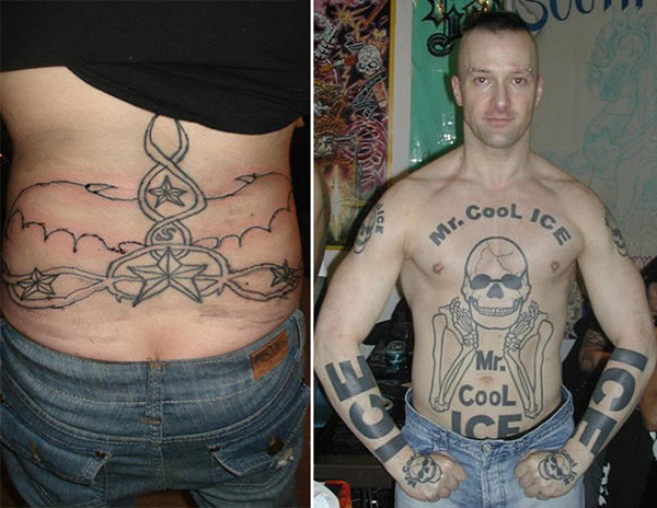 Nechtěli bychom být jejich rodiči, když s tímhle přišli domů. Jedna dobře mířená tady stačit rozhodně nemohla. Tetování nejsou ani hezká, ani o něčem vypovídající. Maximálně tak o ne příliš zdravém rozumu dotyčných jedinců. Těžko říct, jestli byli totálně mimo nebo pod vlivem nějakých látek, když si tohle nechali vytvořit. Buď jak buď, většina z nich už dnes svého činu stoprocentně lituje. Ale bohužel, už je moc pozdě.