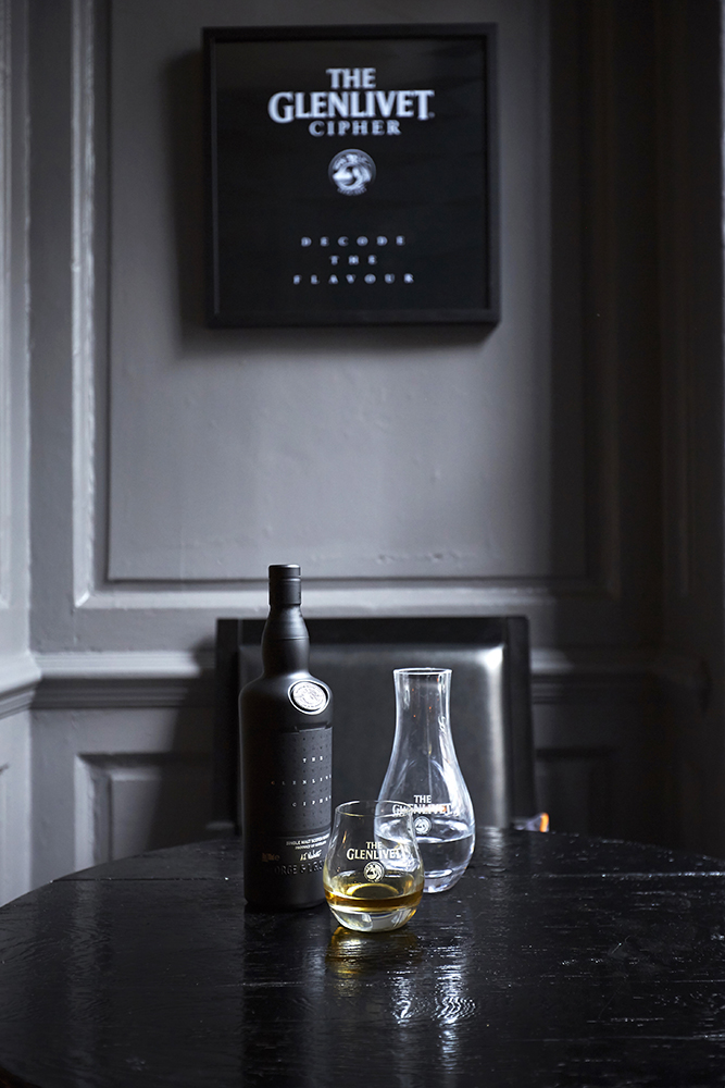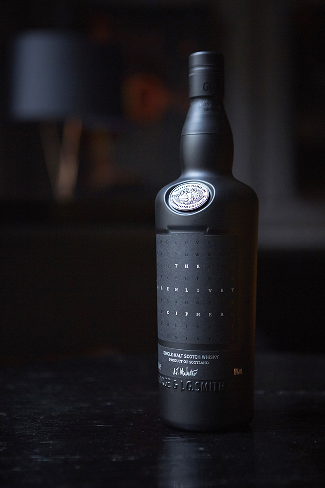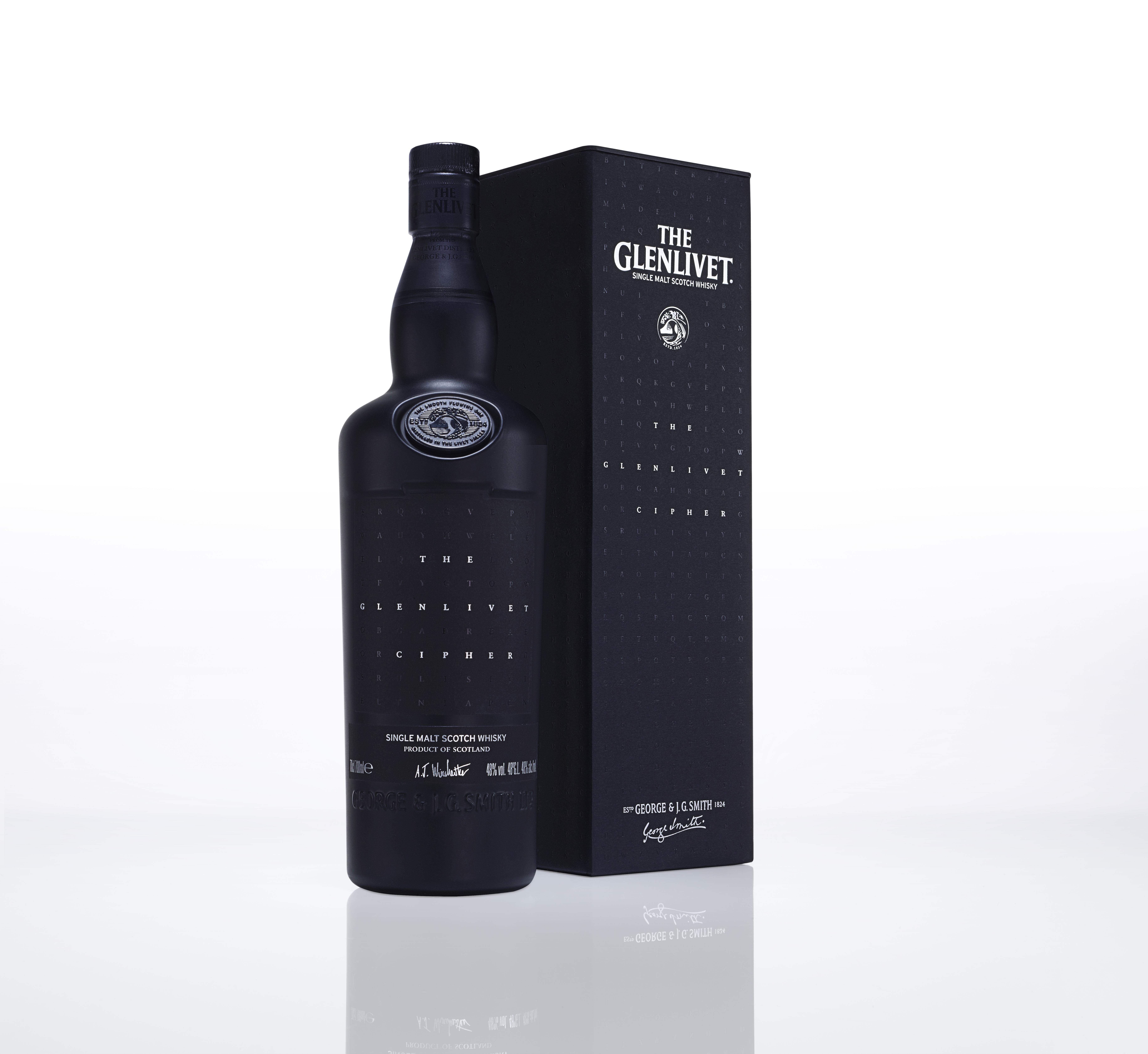 Limitovaná edice single malt whisky The Glenlivet Cipher je tou nejtajemnější whisky všech dob. Elegantní černá láhev z neprůhledného skla byla na trh uvedena s tajným chuťovým profilem a bez jakýchkoliv bližších informací.