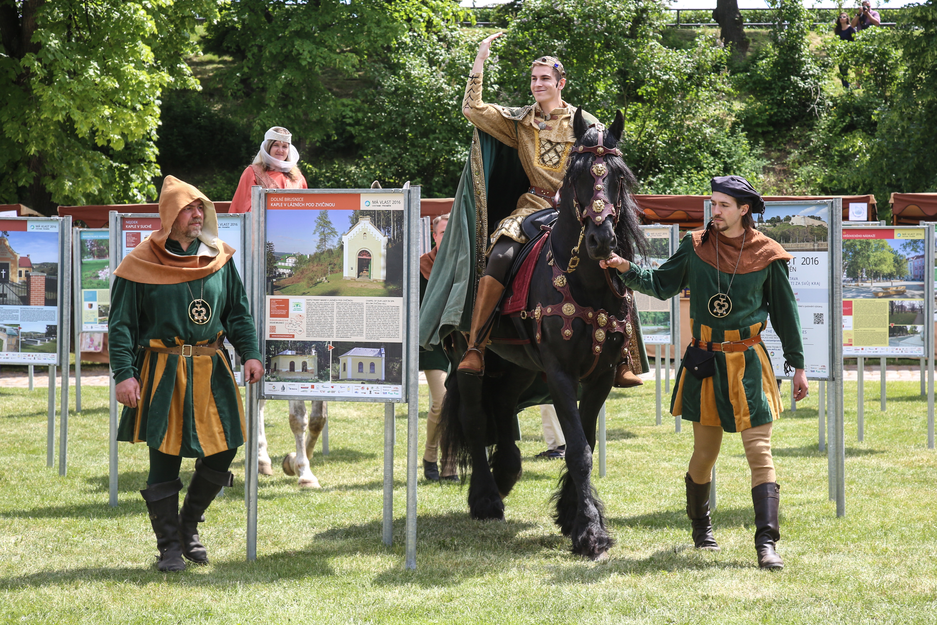 Herci Adéla Gondíková a David Gránský dnes na Vyšehradě zahájili putovní výstavu Má vlast cestami proměn. V režii Mirjam Landa sehráli fiktivní setkání krále Karla IV. a jeho maminky Elišky Přemyslovny.