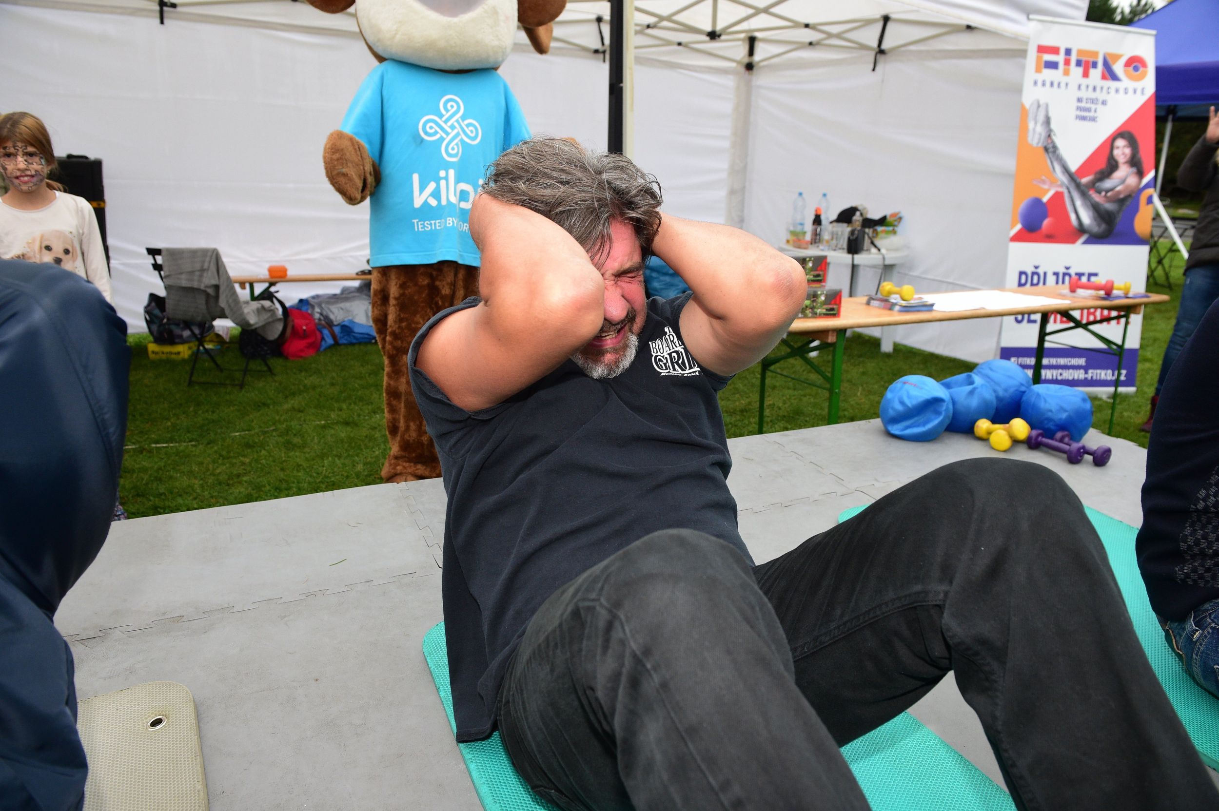 Ta se ale nebojí ani příští rok. A to má oproti Evě generační věkový rozdíl. V uvolněné atmosféře se na další sportovní klání se přihlásil i zasloužilý kulinář a milovník gastronomie Jiří Babica. Hanka si pro něj připravila oblíbený cvik sklapovačky. A aby mu nebylo na podiu smutno, spolu s ním vyzvala i zástupce starosty městské části Praha 4, Ing. Zdeňka Kováříka