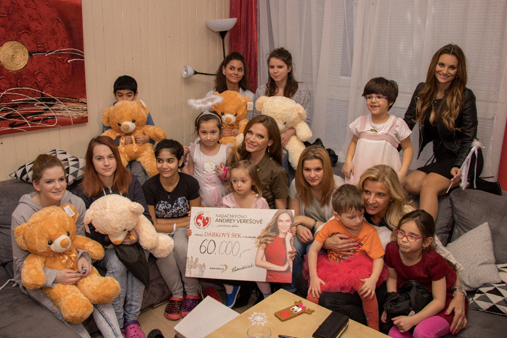 Top modelka Andrea Verešová se v rámci svého Nadačního fondu NF AV věnuje dětem z Dětských domovů. Pravidelně navštěvuje děti v Plzeňském Dětském domově Domino. Tentokrát zde předala šek na 60 000 Kč a jako vždy spoustu dárků.