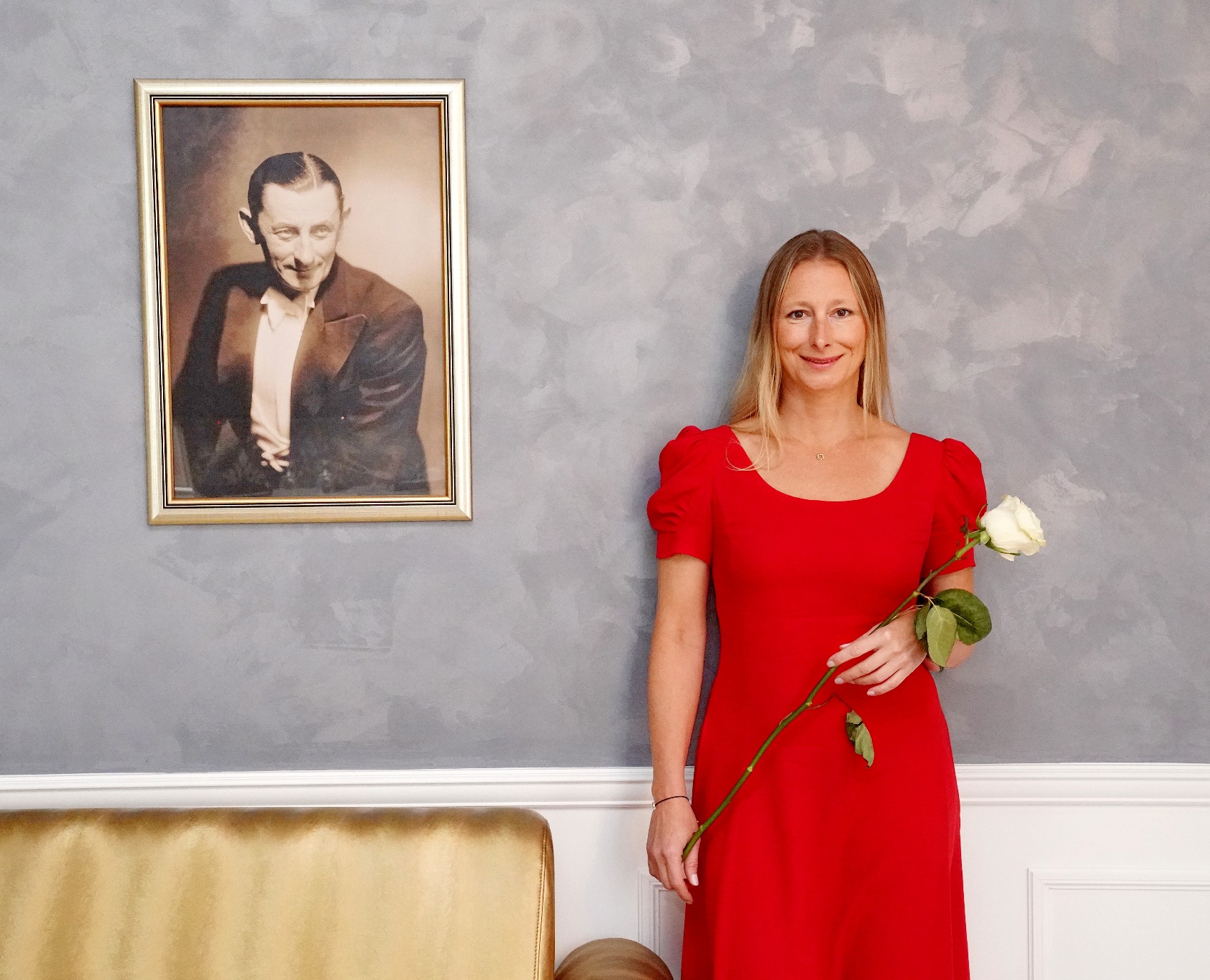 Svůj apartmán tu má i Vlasta Burian. Pokřtít jej přijela jeho pravnučka Monika Kristl.