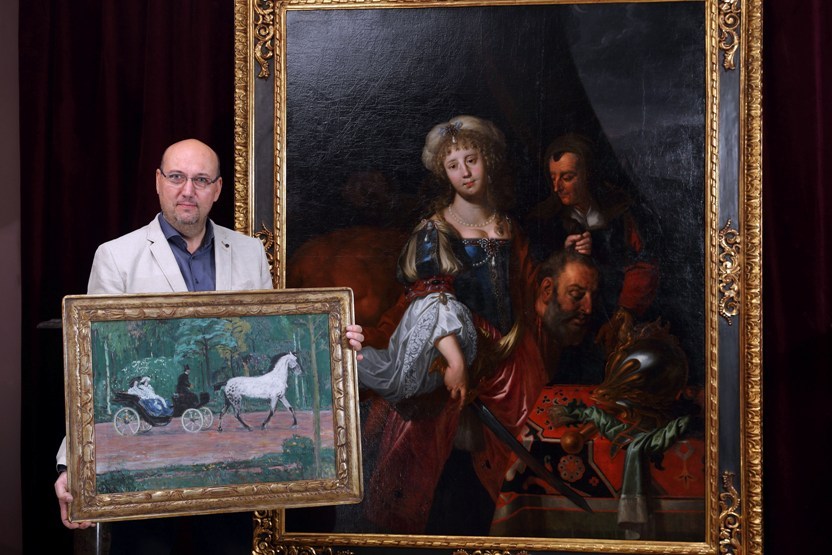 Nejvýše vyvolávanou položkou za 7 000 000 korunje Judita s hlavou Holoferna, obraz zachycující Juditu s uťatou hlavou velitele Nabukadnezarova vojska. Dech beroucí výjev ze Starého zákona namaloval okolo roku 1650 ceněný německý mistr Johannes Spilberg, patřící ke „druhé generaci” Rembrandtových žáků. Obraz má i zajímavou historii. Od generála z Amsterdamu jej získal anglický král Karel II., a poté se jako svatební dar královny Viktorie dostal až na dvůr Mikuláše II..Car pak obraz věnoval za věrné služby jednomu ze svých významných poddaných. S dalšími generacemi se dílo dostalo až do Prahy.„Kupec tak nezíská jen nádherné umělecké dílo, ale současně i kus historie spolu s potvrzenou legendou, která toto plátno provází,“ upozorňuje Hejtmánek, který obrazu chystá aukční premiéru.