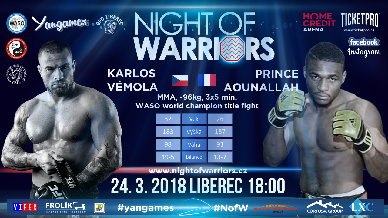 V listopadu loňského roku vyzval na Night of Warriors v Liberci ikona českého MMA Karlos Vémola francouzského Prince Aounallaha, který dokázal zatím porazit absolutní českou špičku MMA. Prince na tuto výzvu reagoval s tím, že chce Karlosův pás světového šampiona, který Karlos drží od loňského května.