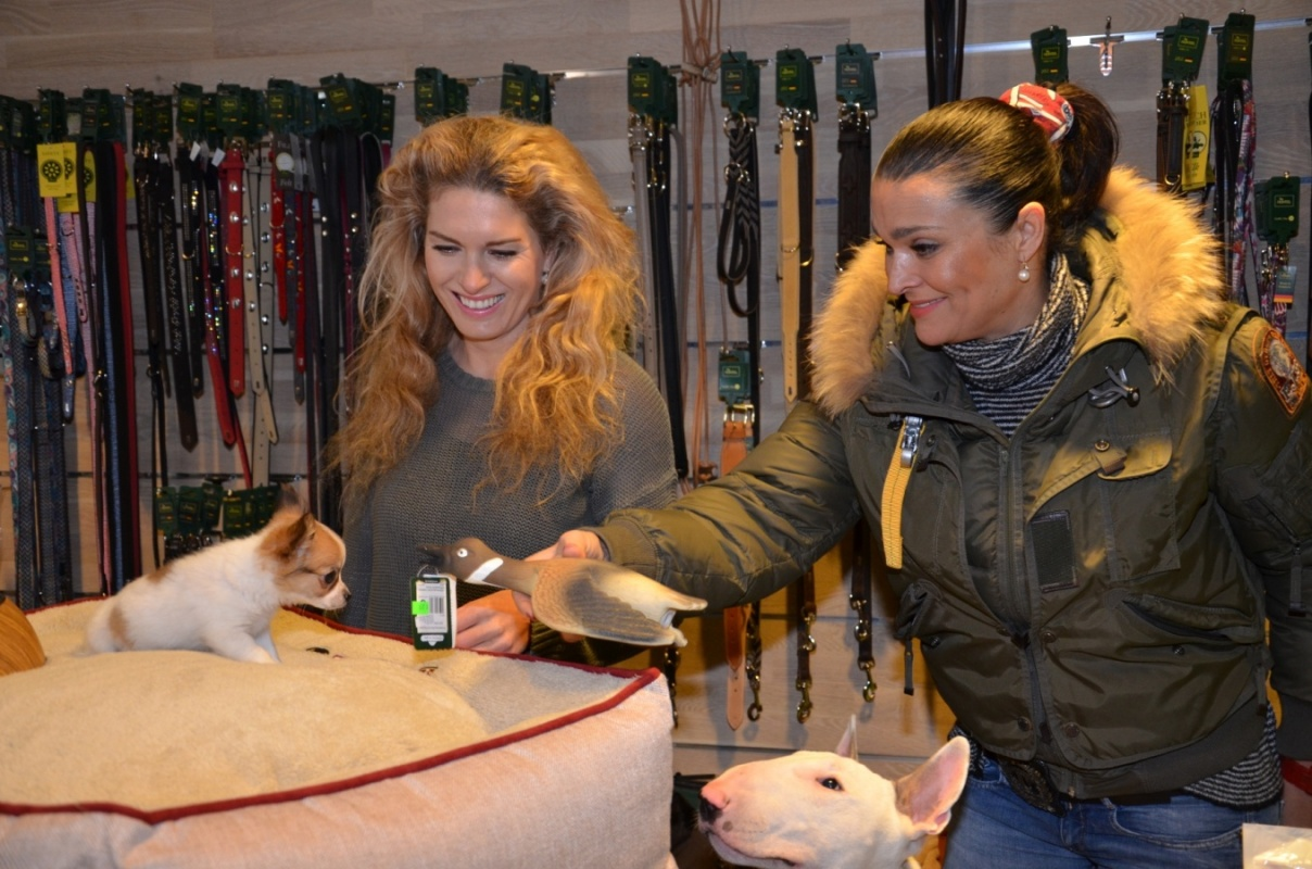 Bulteriér Umberto a čivava Ani se při příchodu řádně očuchali a pak se společně vydali na průzkum trhu. Oba jsou ještě štěňata, ale jelikož na ježíška nevěří, bylo jim povoleno vybrat si vánoční dárky podle svého čuchu, skusu a vkusu. „Venku se už začíná pořádně ochlazovat, a protože Ani je ještě štěně, je potřeba ji teple obléci. Žije v bytě, a když je venku mínus deset, tak dělá rozdíl teplot i 32°C. Myslím, že žádnému psovi extrémní změny teplot nesvědčí, a to zejména té naší myši vydávající se za psa,“ říká s úsměvem starostlivá panička čivavy Olga Menzelová. Na zimní procházky jí v obchodě My Label vybrala opravdu slušivý a kvalitní obleček, který jí perfektně sedl. Aby byl venkovní outfit kompletní, nechala si od majitelek obchodu poradit a koupila ještě nádherný obojek s vodítkem. I když je tato fenka co do velikosti sotva po kotníky, mezi ostatními psy z ní po vánocích bude velká psí dáma. A opravdové dámy se nosí na rukou, proto ji Olga Menzelová při odchodu odnesla ve stylové a očividně i pohodlné psí tašce.