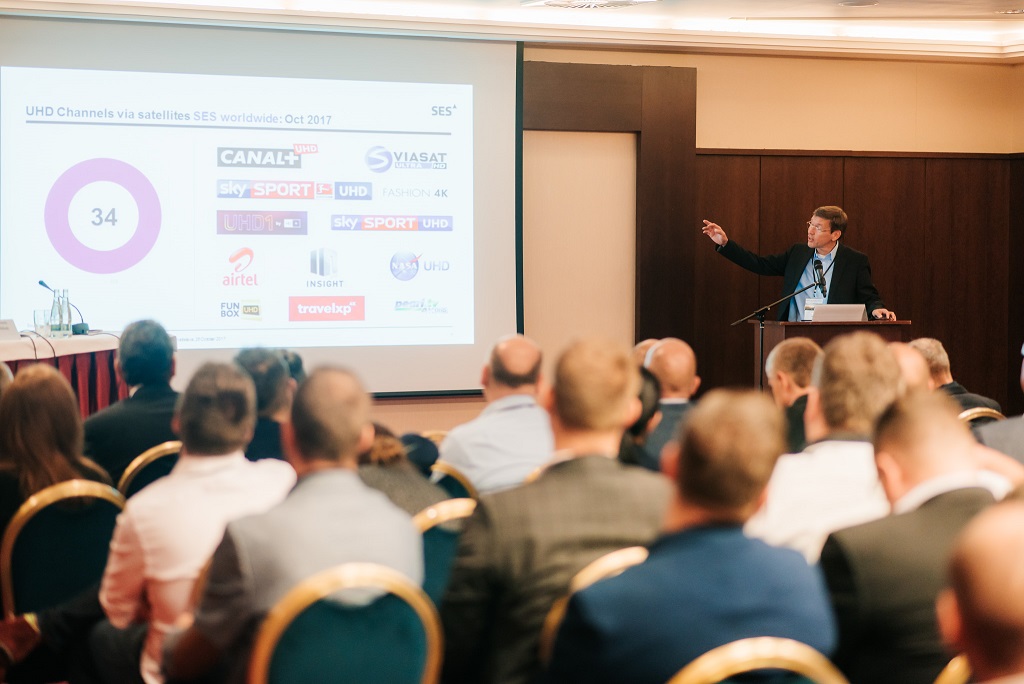 Thomas Wrede, viceprezident pro nové technologie a standardy, divize SES Video ve společnosti SES, představil v Bratislavě nejnovější čísla týkající se komerčního vývoje Ultra HD. Dnes je celosvětově přenášeno až 83 Ultra HD programů prostřednictvím satelitu. 33 % z nich je vysílaných v Evropě a přenos většiny z nich zajišťuje flotila satelitů SES (konkrétně satelitní systém ASTRA), následuje Asie a Severní Amerika.
