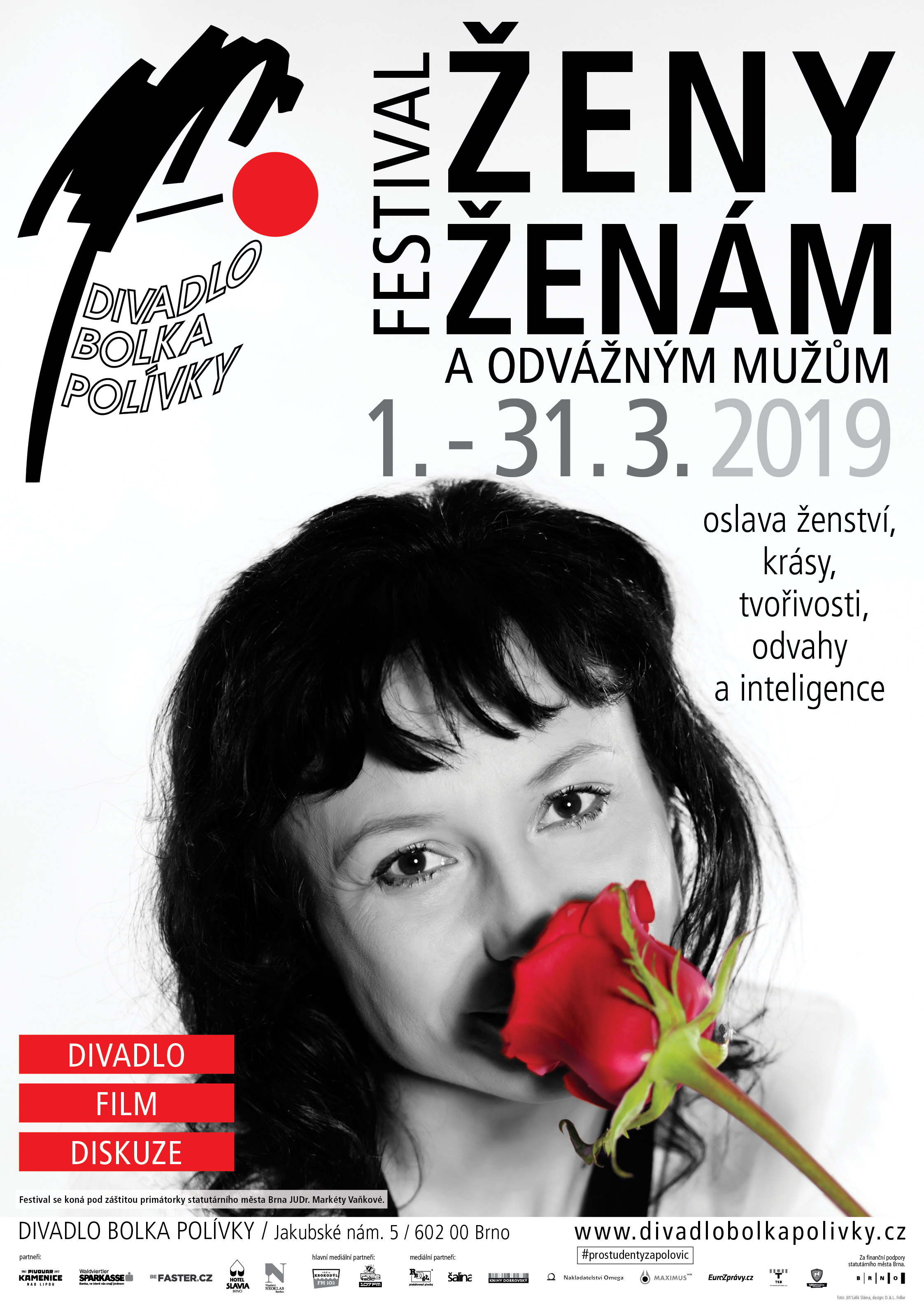 Březen patří již tradičně v brněnském Divadle Bolka Polívky festivalu Ženy ženám a odvážným mužům, jehož záměrem je oslavit ženství, krásu, tvořivost, odvahu a inteligenci. Tentokrát se přehlídka bude konat od 1. do 31. března v prostorách Divadla Bolka Polívky a Univerzitního kina Scala.