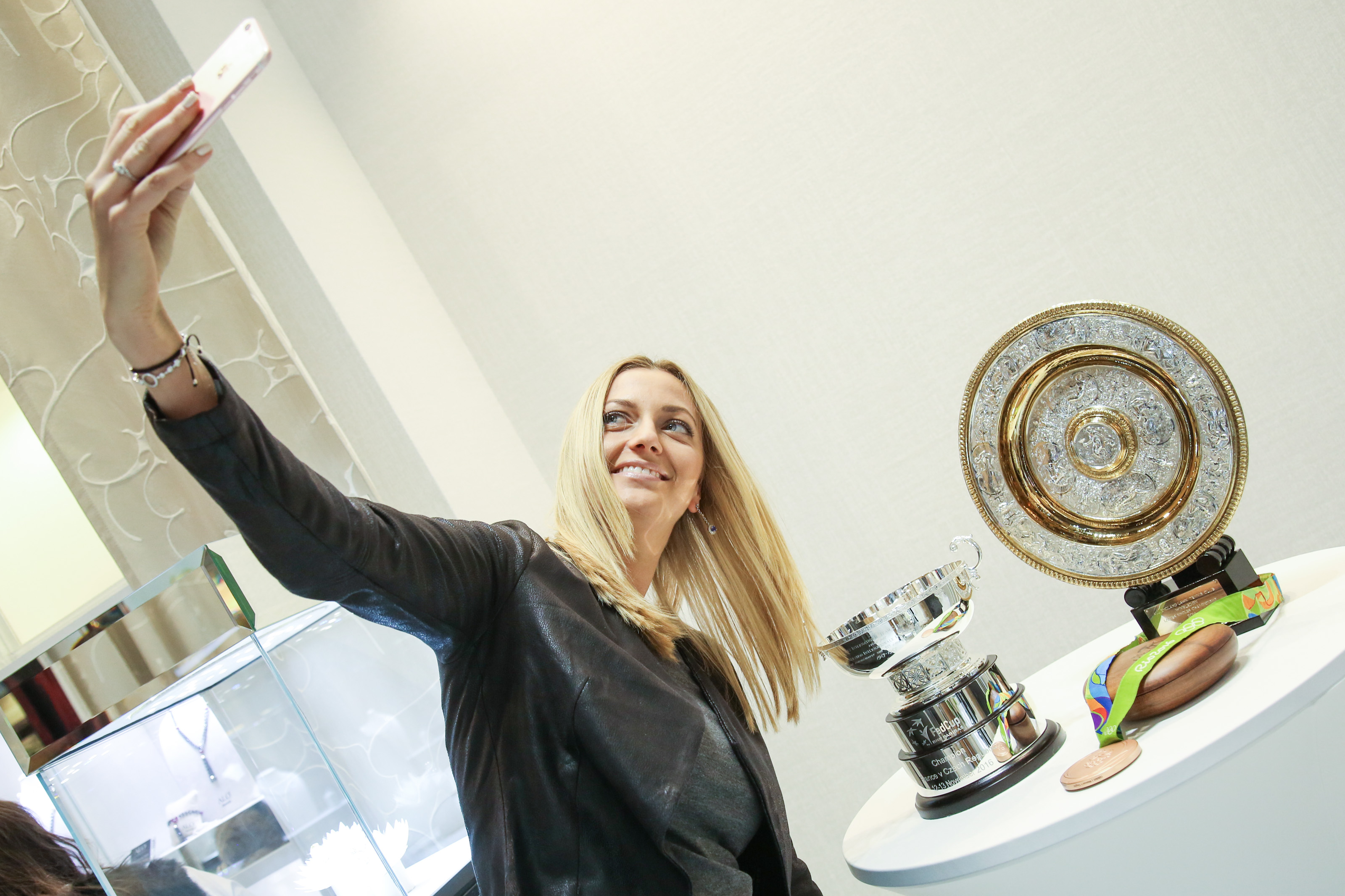 V butiku této klenotnické značky v Palladiu proběhla v odpoledních hodinách autogramiáda pro veřejnost. Petra podepisovala nejen své fotky, ale také talismany, které si přinášeli její fanoušci. Vidět i vyfotit si mohli také vystavené Petřiny trofeje.