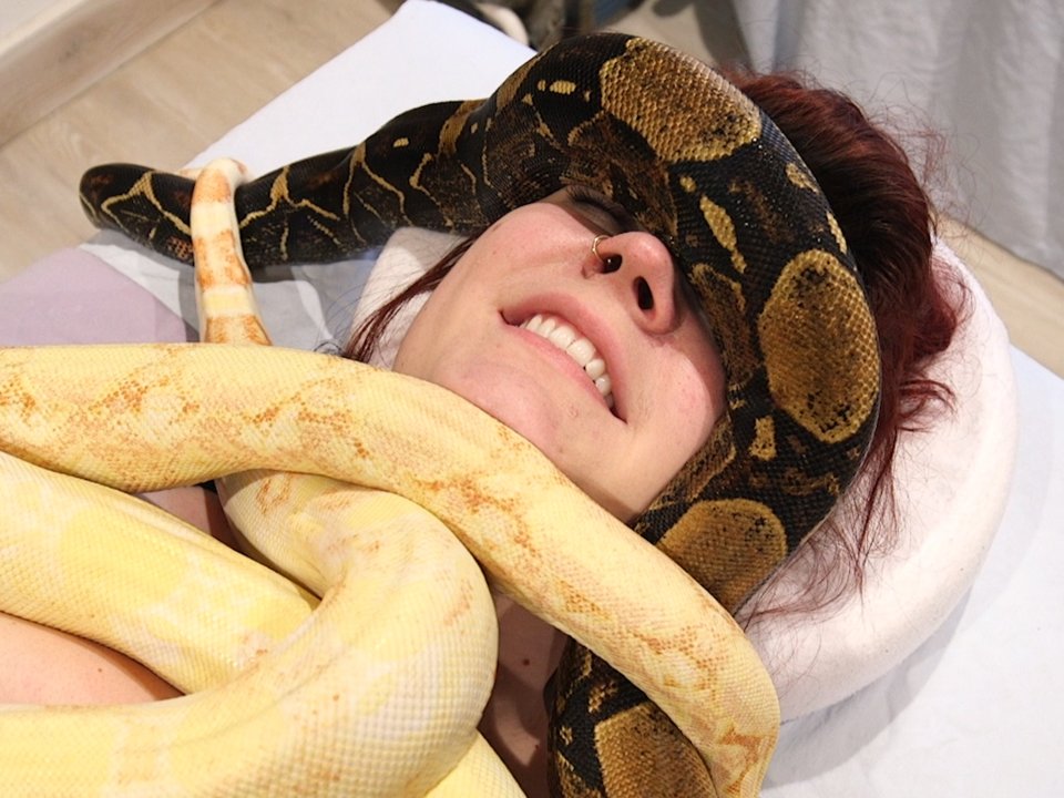 Mazlení s hady je prý velmi účinná metoda, která zbavuje člověka bolestí kloubů a svalů