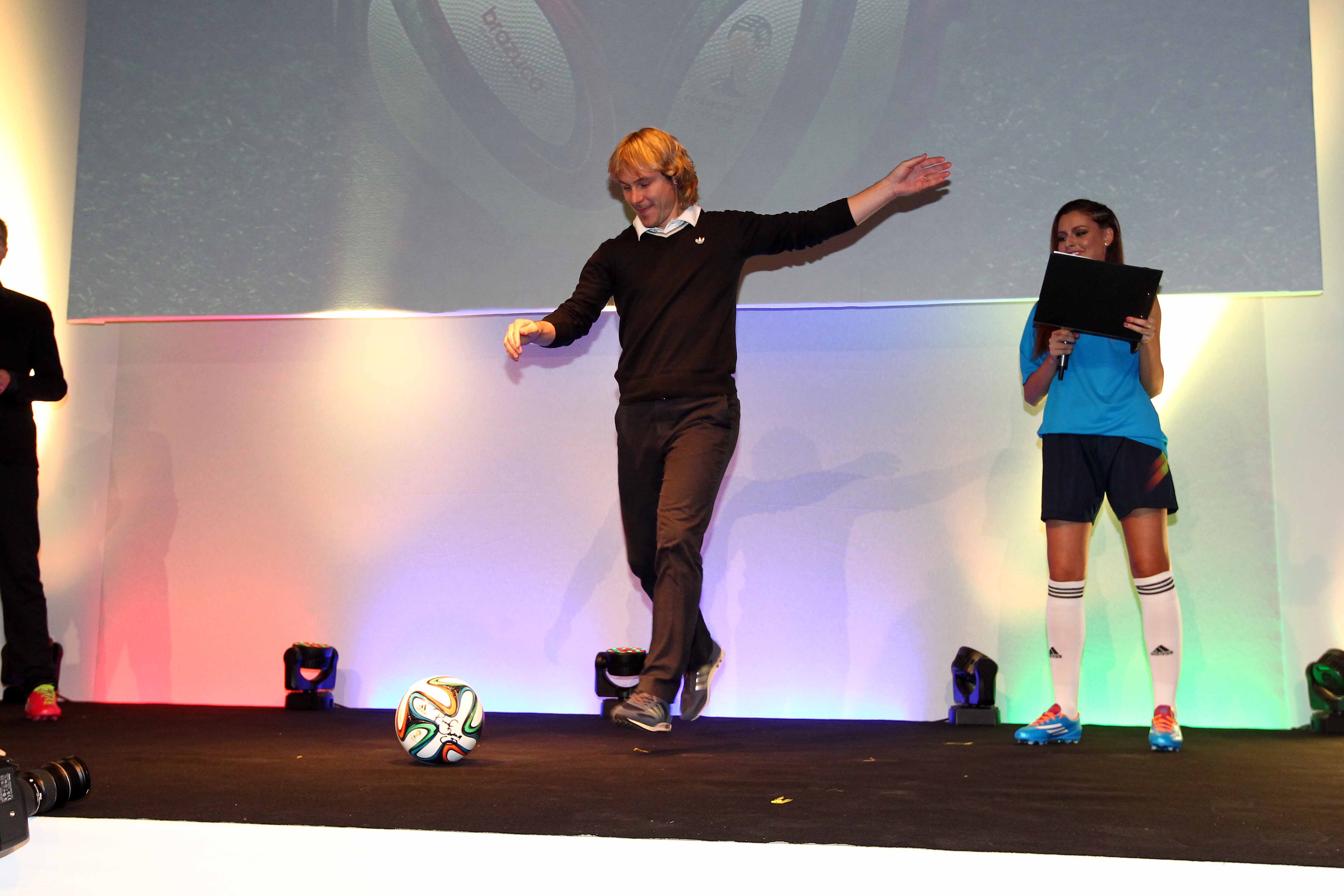 Svůdné Tereze Chlebovské nestačí moderování zápasů Ligy mistrů, ve společnosti kulatého míče, obklopenou muži, jsme ji zastihli v kopačkách a dresu Adidas i na její moderátorské premiére představení nového fotbalového míče MS v Brazílii.