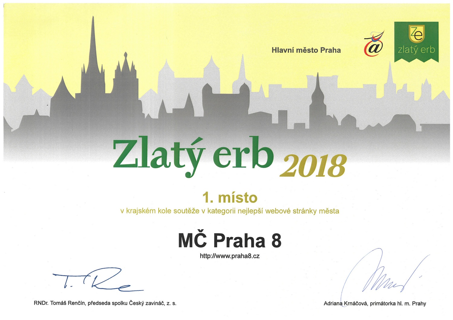 MČ Praha 8 má nejlepší webové stránky z celé z celé Prahy. Dokazuje to ocenění v krajském kole renomované soutěže Zlatý erb. Osmá pražská městská část se stala vítězem po čtvrté v řadě.