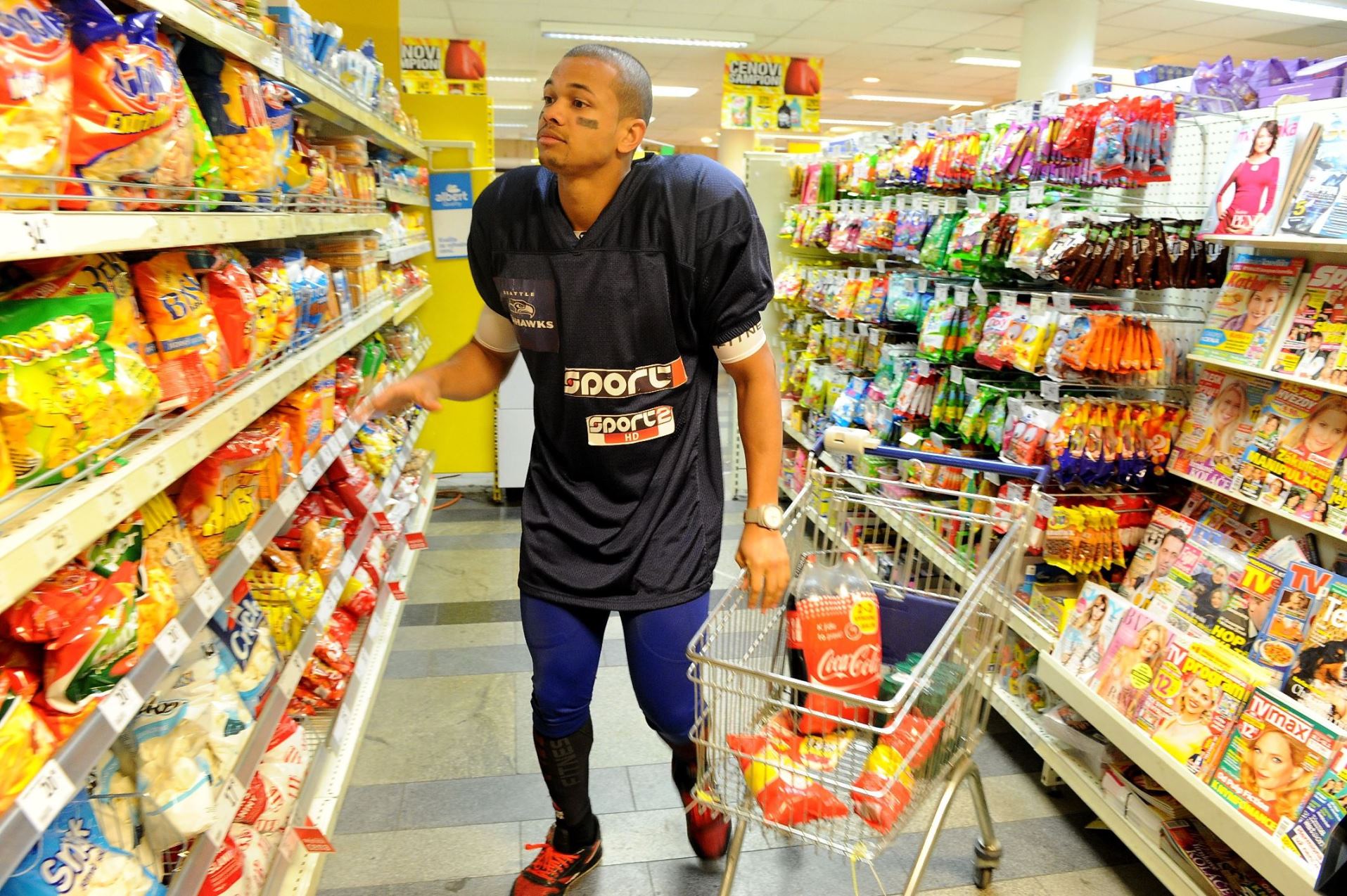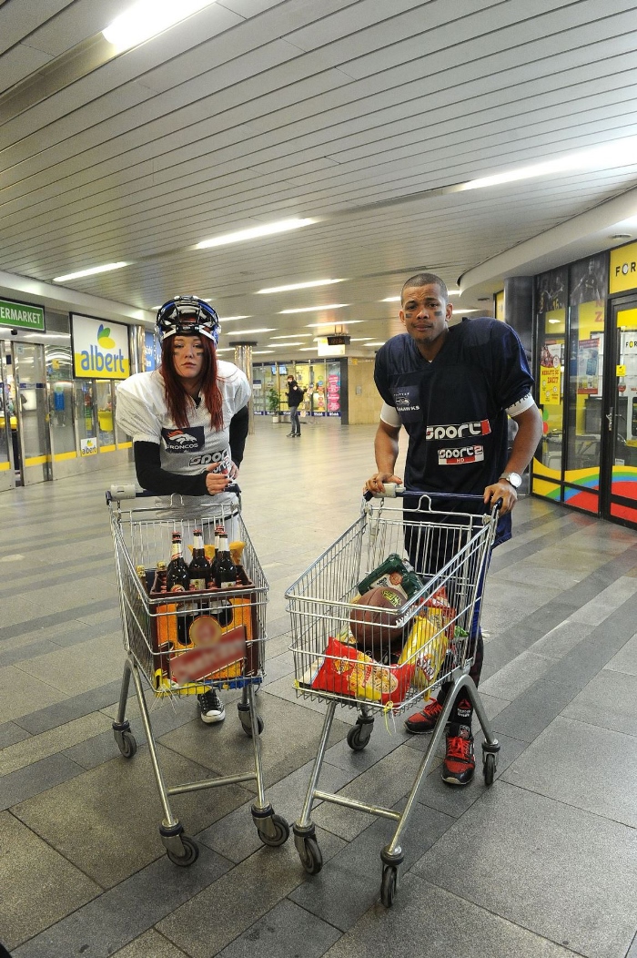 Zrzavá pěvkyně se ihned po odstartování vrhla do sekce alkoholu, popadla první basu, která ji zkřížila cestu, a k tomu pár lahví šumivého vína na oslavu, jako by si byla jistá vítězstvím svého týmu. „Kluci, kluci, tak co si dáme? No přece šampáňo až vyhrajeme,“ pokřikovala Debbie. Poté zamířila pro nachos a chipsy a její časový limit vypršel. Cena nákupu se vyšplhala na 956 Kč. Ben, skalní fanoušek týmu Seattle Seahawks, byl zřejmě po boji na Václavském náměstí dost vyhladovělý, jelikož se hned po odstartování souboje hrnul do sekce s tyčinkami, sušenkami, chipsy apod. V jeho vozíku nechyběly limonády a basa piv. „Neříkej hop, dokud nepřeskočíš,“ hlásá známé rčení a tím se řídí i mladý umělec, který nepředjímal výsledek Super Bowlu a šampaňské na oslavu vítězství svého týmu raději do nákupu nezařadil. Možná právě ono víno, které Ben nekoupil, rozhodlo o výhře Debbi, zpěvák totiž nakoupil pouze za 543 Kč. Jelikož však zpěvačka v první, sportovně laděné, výzvě na Václavském náměstí prohrála, je celkové skóre nerozhodně 1:1. Rozhodli se proto oba zpěváci připravit poslední a rozhodující boj, který vyřeší jejich fanouškovský spor před nedělním Super Bowlem.