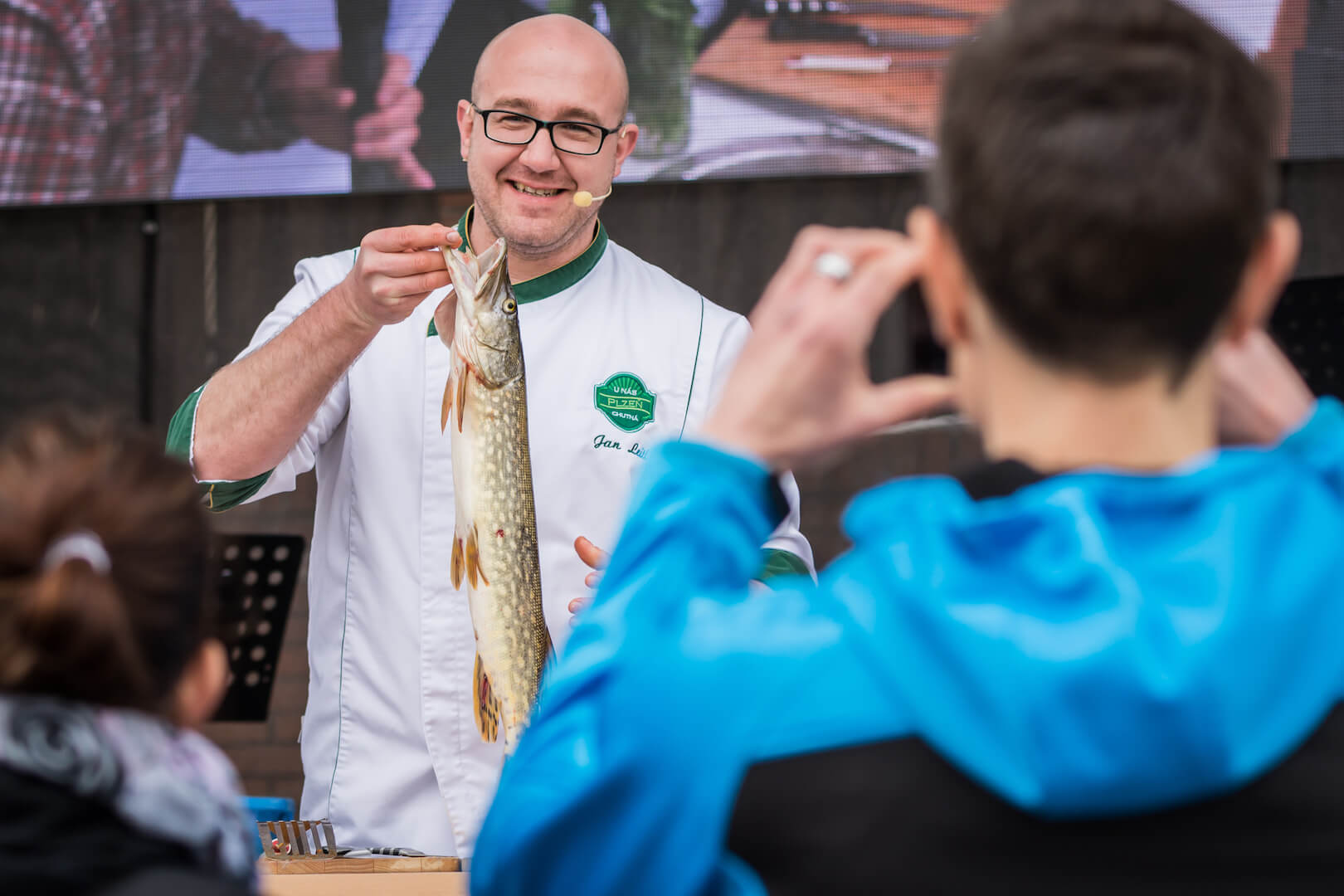 Jak tradiční, tak i méně známé a neotřelé pokrmy z ryb připraví na festivalu přímo před zraky návštěvníků zkušení kuchařští mistři. Jan Leitl, kuchař a kontrolor kvality pokrmů v FC Viktoria Plzeň a současně odborník na molekulární gastronomii, vystoupí se svojí kuchařskou show od 10:10. Na něj od 11:15 naváže vítěz televizní kuchařské soutěže Na Nože Robert Zatloukal. Mezi gurmánským programem zpříjemní festivalovou atmosféru hudební vystoupení a krátké vzdělávací bloky, při kterých se přítomní zdokonalí v čepování piva, osvěží si zásady správného stolování či zjistí, s jakými víny lze rybí pokrmy nejlépe kombinovat.