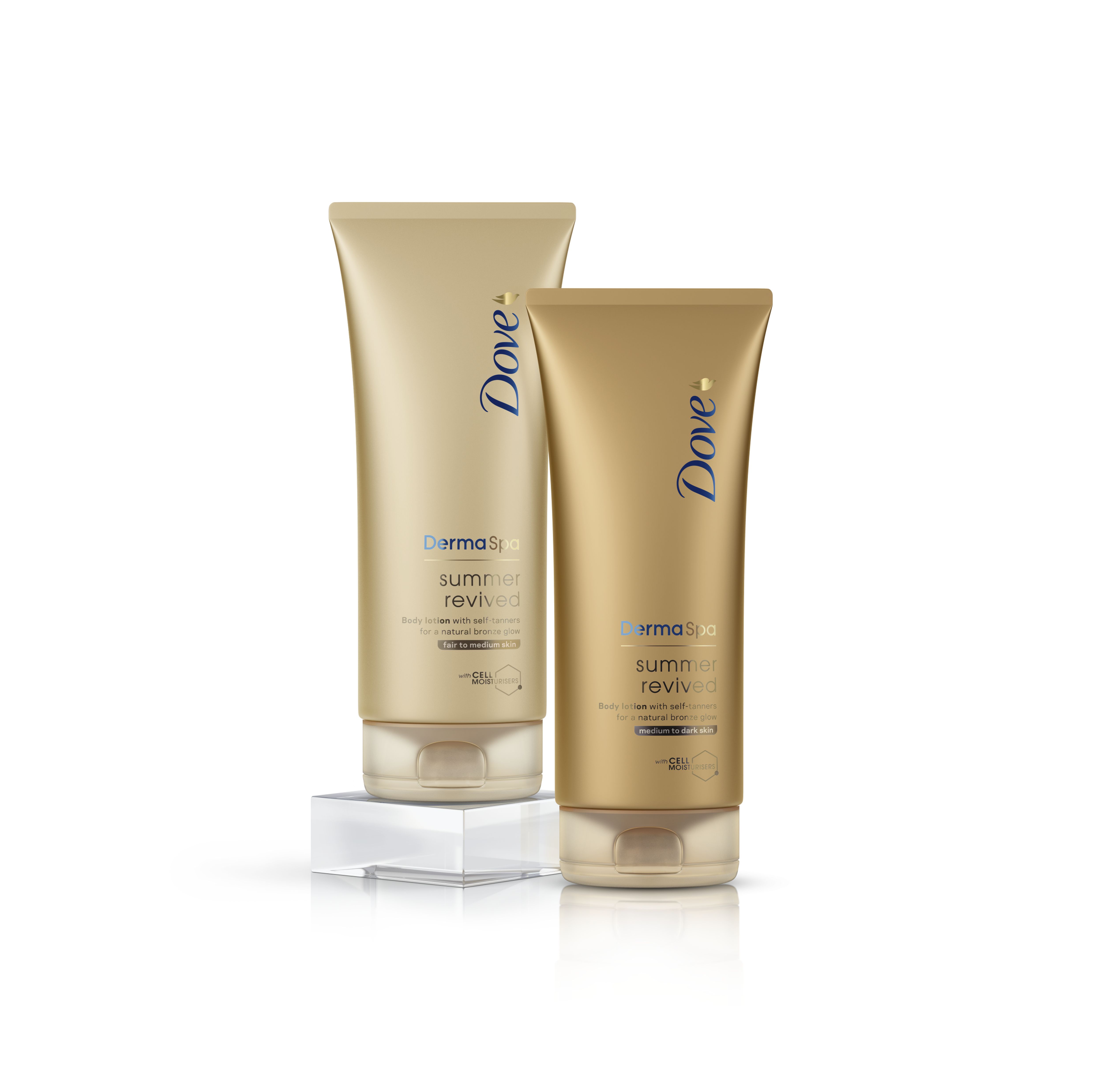 Polibek léta v podobě zdravě opáleného vzhledu pokožce propůjčí řada Dove DermaSpa Summer Revived. Její tónovací tělová mléka obsahují jemné samoopalovací látky a složky získané z přírodních rostlinných olejů. Jsou dostupná ve dvou verzích – pro světle až středně tmavou pokožku a středně tmavou až tmavou pokožku