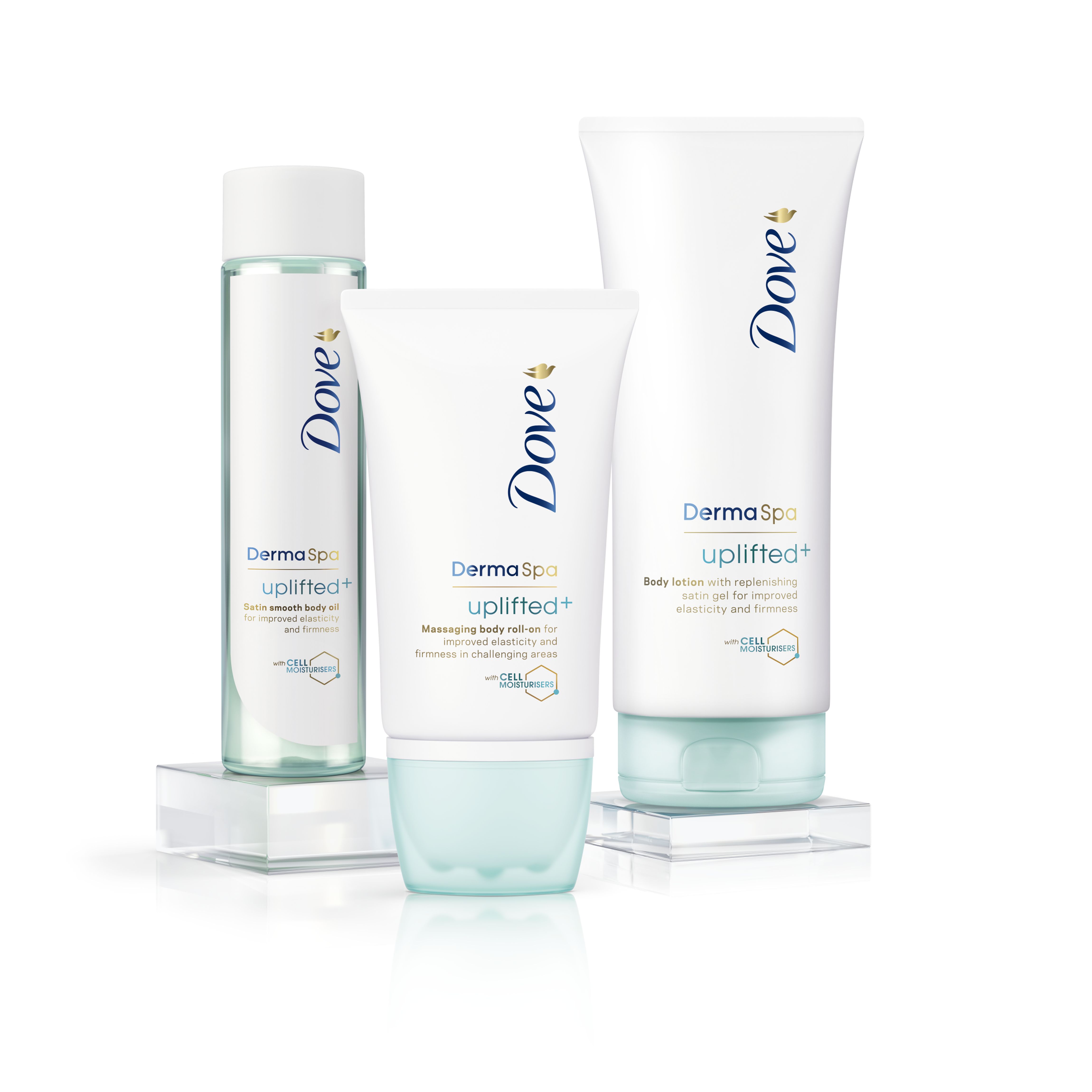 Rozmazlující lázeňská péče se spojila s poznatky špičkových dermatologů, aby vznikly výjimečné kolekce Dove DermaSpa Uplifted+ podporující pevnost, pružnost i hebkost pokožky a Dove DermaSpa Summer Revived, jejíž tónovací tělová mléka dodávají pokožce přirozeně opálený vzhled. Unikátní technologie Cell-MoisturisersTM pro hloubkovou hydrataci, která byla doposud využívána jen v krémech na obličej, a podmanivé vůně produktů zaručují, že řada Dove DermaSpa povýší rutinní přípravy „do plavek“ na rozmazlující péči a požitek pro všechny smysly.