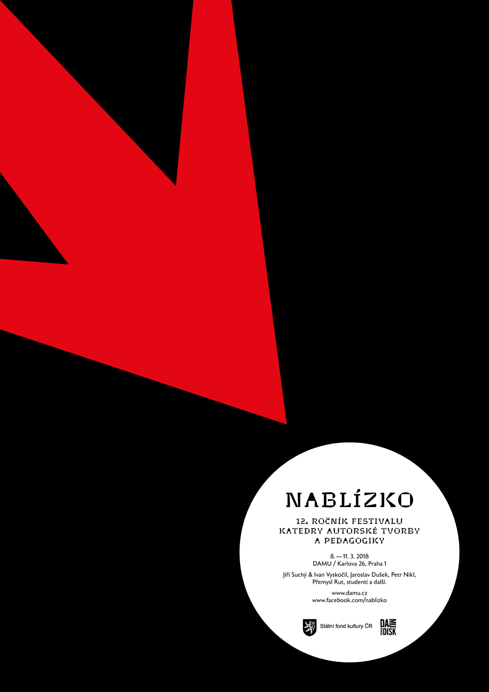V divadle DISK, Studiu Řetízek a dalších prostorách DAMU se ve dnech 8.–11. 3. 2018 představí 8 divadelních projektů, 10 workshopů, 20 autorských prezentací, hudební kapely a také filmové projekce studentů UMPRUM.