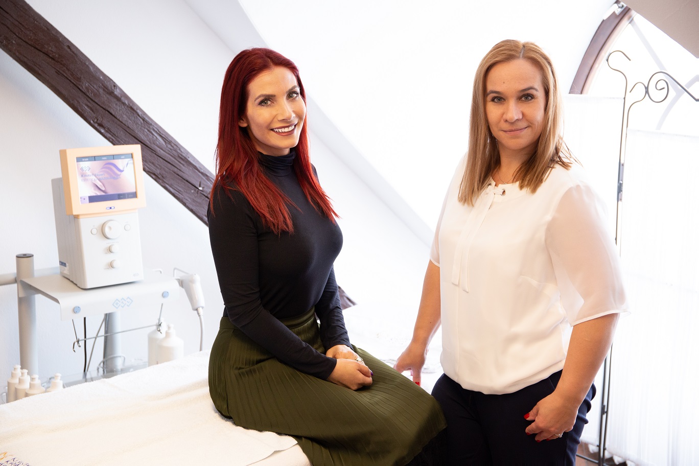 Alena Jírů přitakává: „Máme tu novinku BTL Unison, která funguje na zeštíhlení a zároveň proti celulitidě. Přestože to Eva vlastně ani nepotřebuje, trvala na tom, že to musí vyzkoušet.“