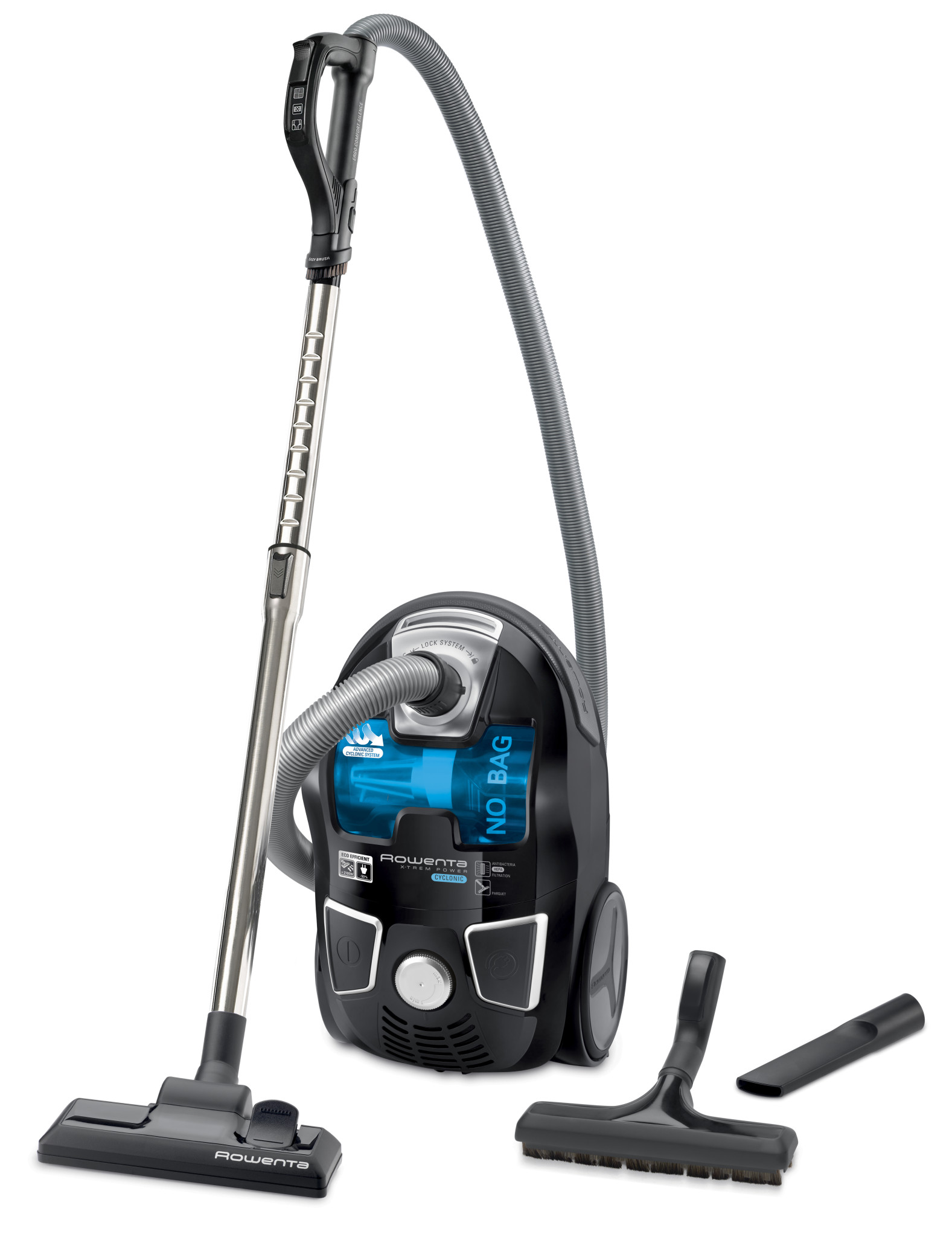Požadujte od vysavače především extrémní výkon a pohodlnou obsluhu bez bolavých zad? Rowenta X-Trem Power Cyclonic Parquet RO6245EA dovede vaše vysoké nároky hravě splnit. Máte doma alergika, smýšlíte ekologicky, chcete si dopřát komfort velké odpadní nádoby, ale zároveň hledáte kompaktní vysavač, který nikde nepřekáží? Konečně se na trhu objevil bezsáčkový vysavač bez kompromisů.