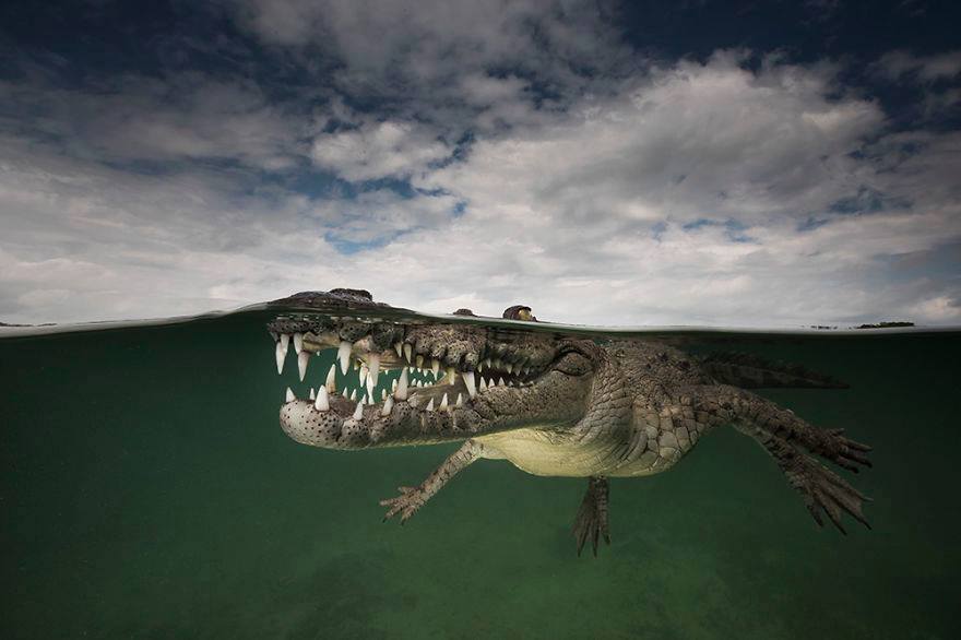 Fantastické fotky, část je nad vodou, část pod vodou!