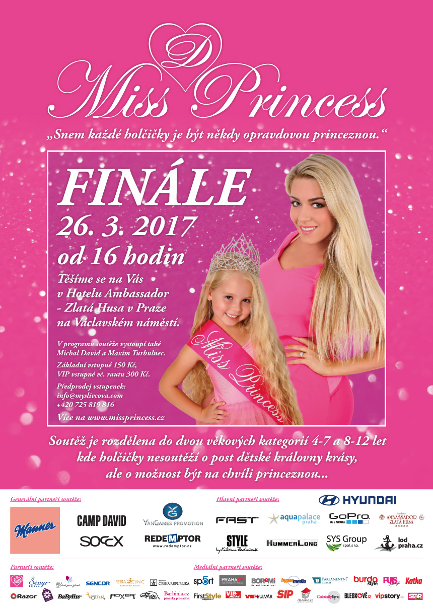 Castingy napříč celou republikou, bezesné noci u výběru těch opravdu nejlepších mladých slečen, hodiny a hodiny práce. To vše je teď u konce. Finále Miss Princess je konečně tady! Startuje už tuto neděli 26. března od 16. hodin v hotelu Ambassador Zlatá husa na Václavském náměstí.