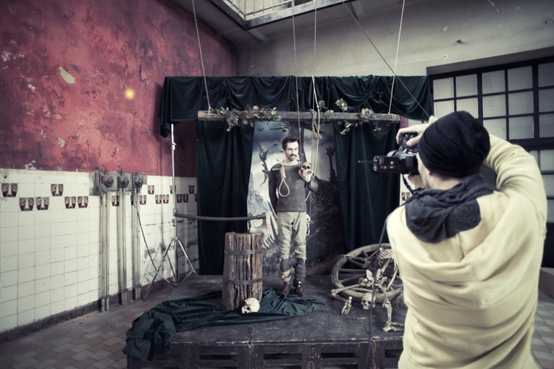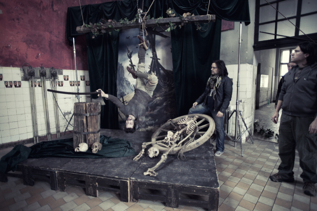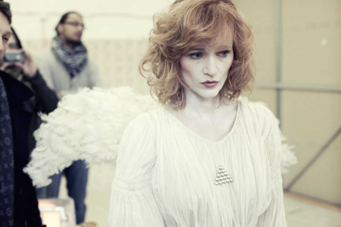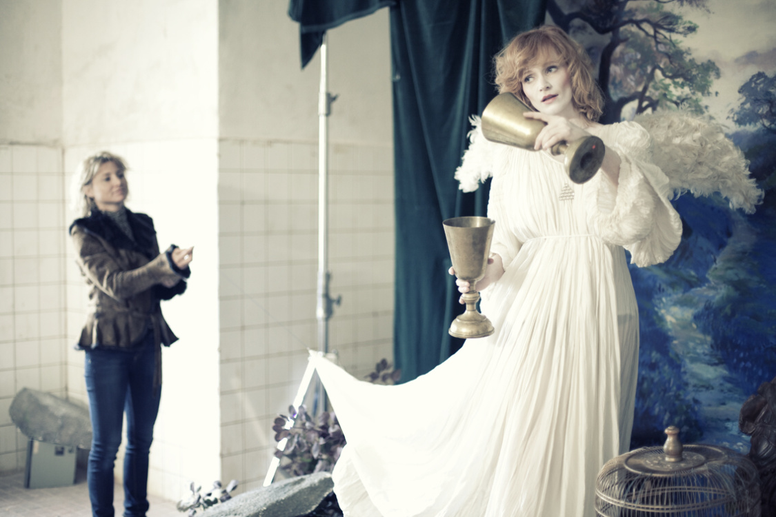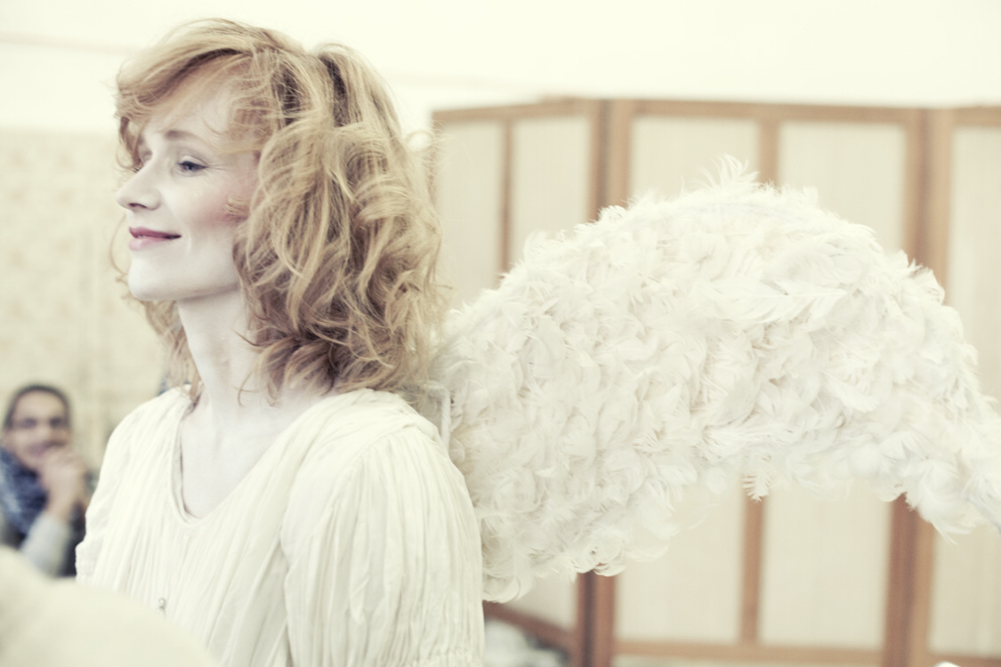 Jako všechny fotografie, i tahle vznikla v prostředí bývalé varny Psychiatrické nemocnice Bohnice, která se dnes využívá jako příležitostné místo k filmování nebo netradiční divadelní scéna. „Trochu jsme měli obavy herce zvát do vybydleného domu uprostřed Bohnické nemocnice, vypadalo to dost podezřele. Zvlášť, když jsme na taxislužbu hlásili – Vyzvednete paní Aňu Geislerovou a odvezete jí do Bohnic. Ale všichni to brali v pohodě. Už jsme za ta léta zjistili, že zkušené herce nezaskočí žádné prostředí, zima, déšť. Jsou za ta léta zvyklí na leccos. Navíc bohnický park, ve kterém je areál zasazen, je na podzim nádherný. Jako stvořený pro to, aby se tam procházel anděl v padání Ani Geislerové,“ vypráví zážitky z focení autoři kalendáře.