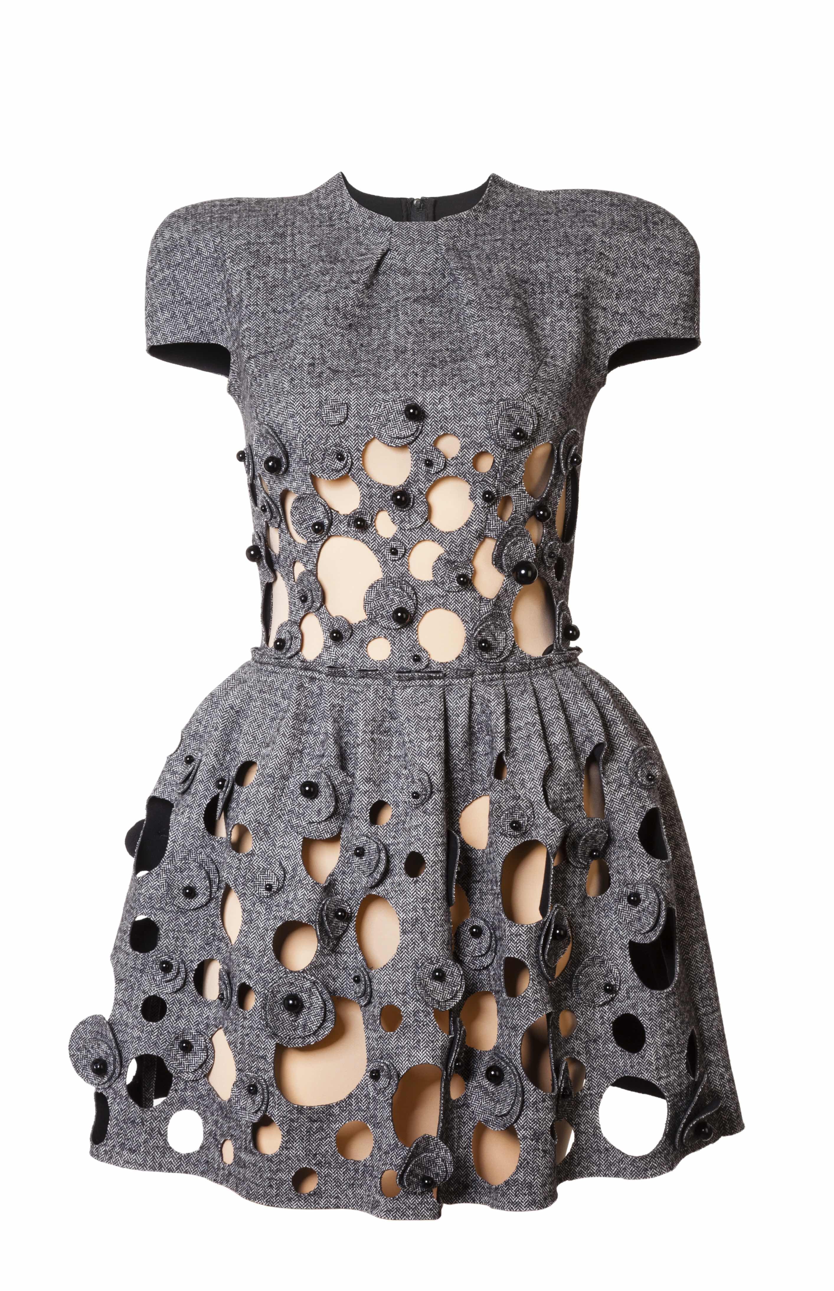 Kolekci uzavírají šaty, které v sobě pro složitost střihů a množství aplikací nesou většinový podíl ruční práce. Členěné černé šaty pouzdrového střihu, s velkým úspěchem prezentované na týdnu módy, doplnily nové střihy, včetně sukní. Elegantní šedivé šaty s perforovanými kulatými aplikacemi TIQE šije na míru ve dvou variantách, obě ozdobené ručně vyšívanými korálky.