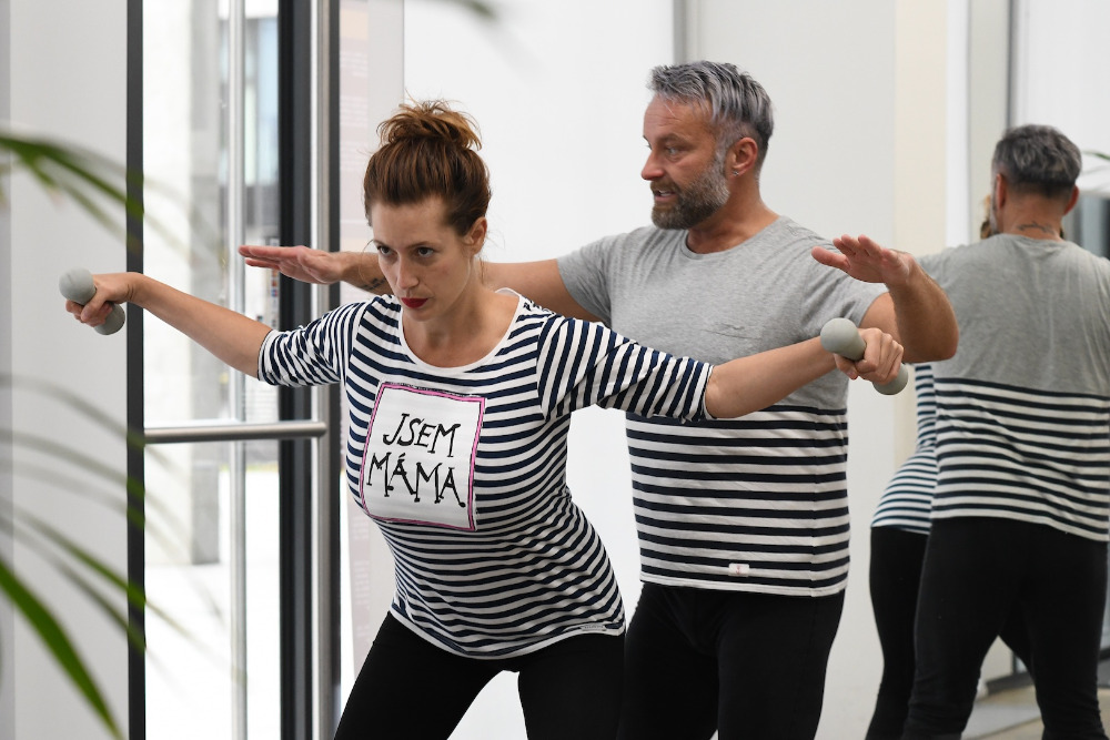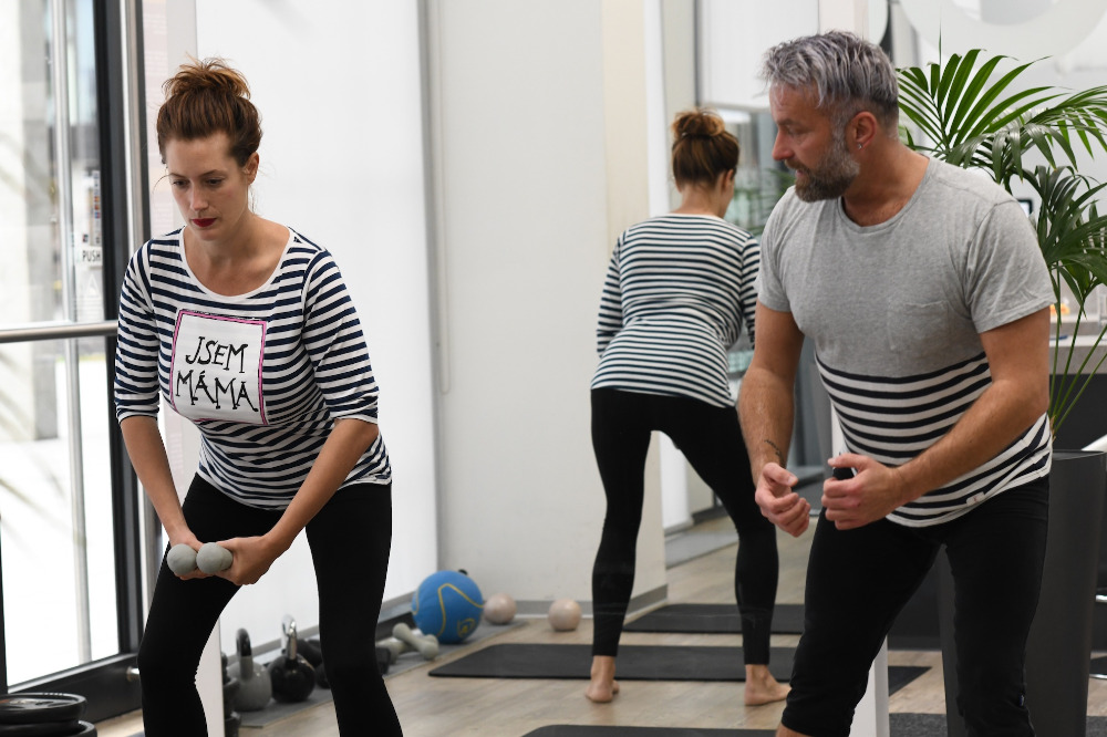 „Svou práci beru jako radost a musím říci, že na každý trénink s holkama se moc těším. Cvičíme spolu už dlouho, ale jako matky jsou o dost zábavnější,“ usmívá se trenér. Novopečené maminky na cvičení oblékly vtipná trička od slovenské herečky Kristíny Farkašové.