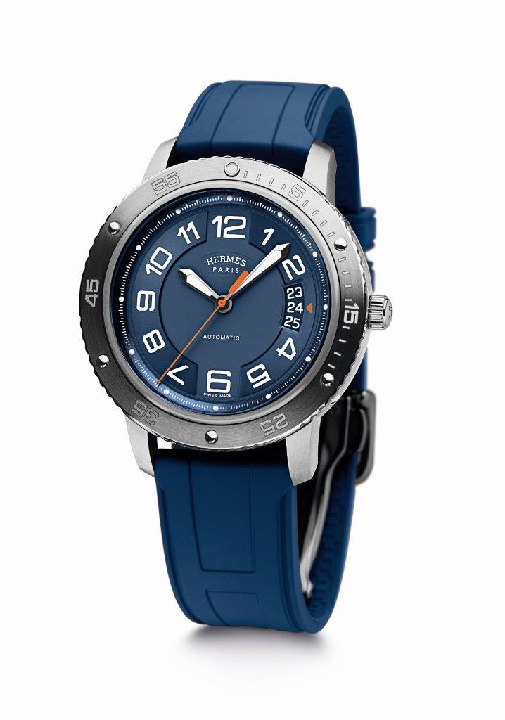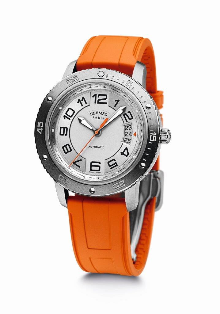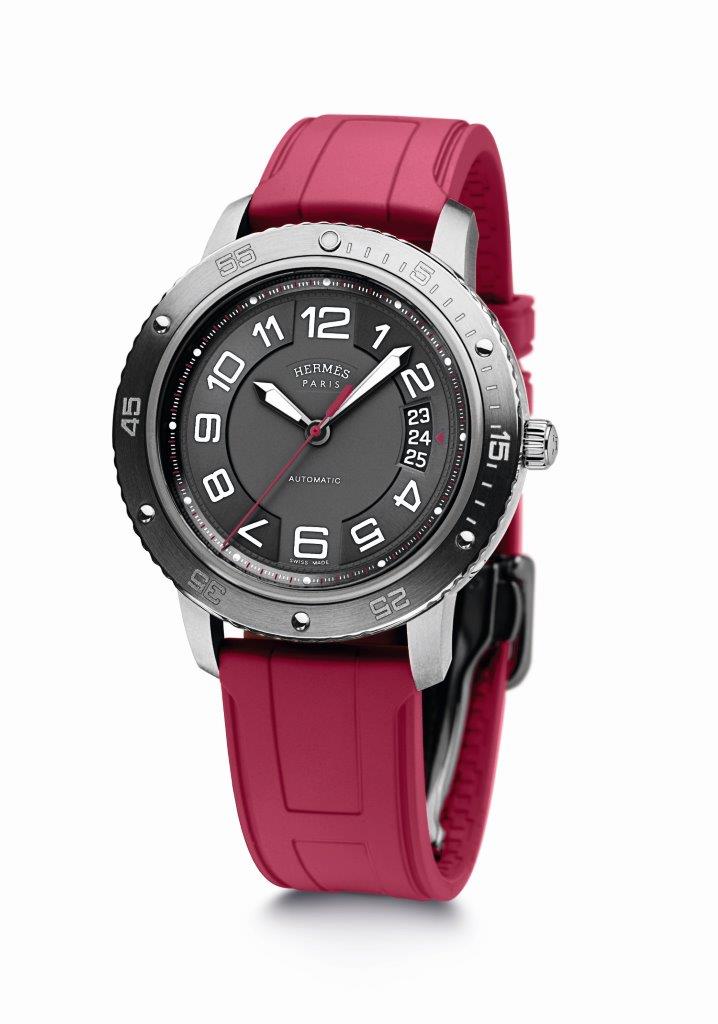 Pouzdro představující hravé snoubení titanu a oceli, řemínek odhalující bohatou škálu jasných barev, mechanický automatický kalibr nekompromisně zachycující čas v sotva znatelném rytmu tance vln či kroků v písku. To vše a ještě více nabízí Clipper Sport. Nový model  představuje rozšíření řady Clipper a charakterizuje jej luneta inspirovaná kulatými lodními okénky z 19. století. Model se vyrábí ve třech verzích a dává vyniknout precizní práci s různými materiály u pouzdra: dýnko a luneta jsou vyrobeny z oceli, střed pak z titanu, tedy materiálu proslulého nízkou hmotností a vynikajícími vlastnostmi, ověřenými ve světě profesionálního jachtingu. Kolekci si můžete prohlédnout v butiku Altman na Václavském náměstí v Praze. Gumový řemínek zdobí písmeno H ve štíhlém provedení, symbolizující značku Hermès. Číselníku vévodí velké arabské číslice, trojúhelníková šipka stejné barvy jako centrální vteřinová ručka pak ukazuje na aktuální datum. Po setmění dýkovité ručky a tečky na pozicích hodinových indexů s luminiscencí Superluminova zajišťují dokonalou čitelnost. Luneta, otočná proti směru hodinových ručiček, se může pochlubit luminiscenčním bodem na pozici 12, jako by nás pobízela nabrat jižní kurz…