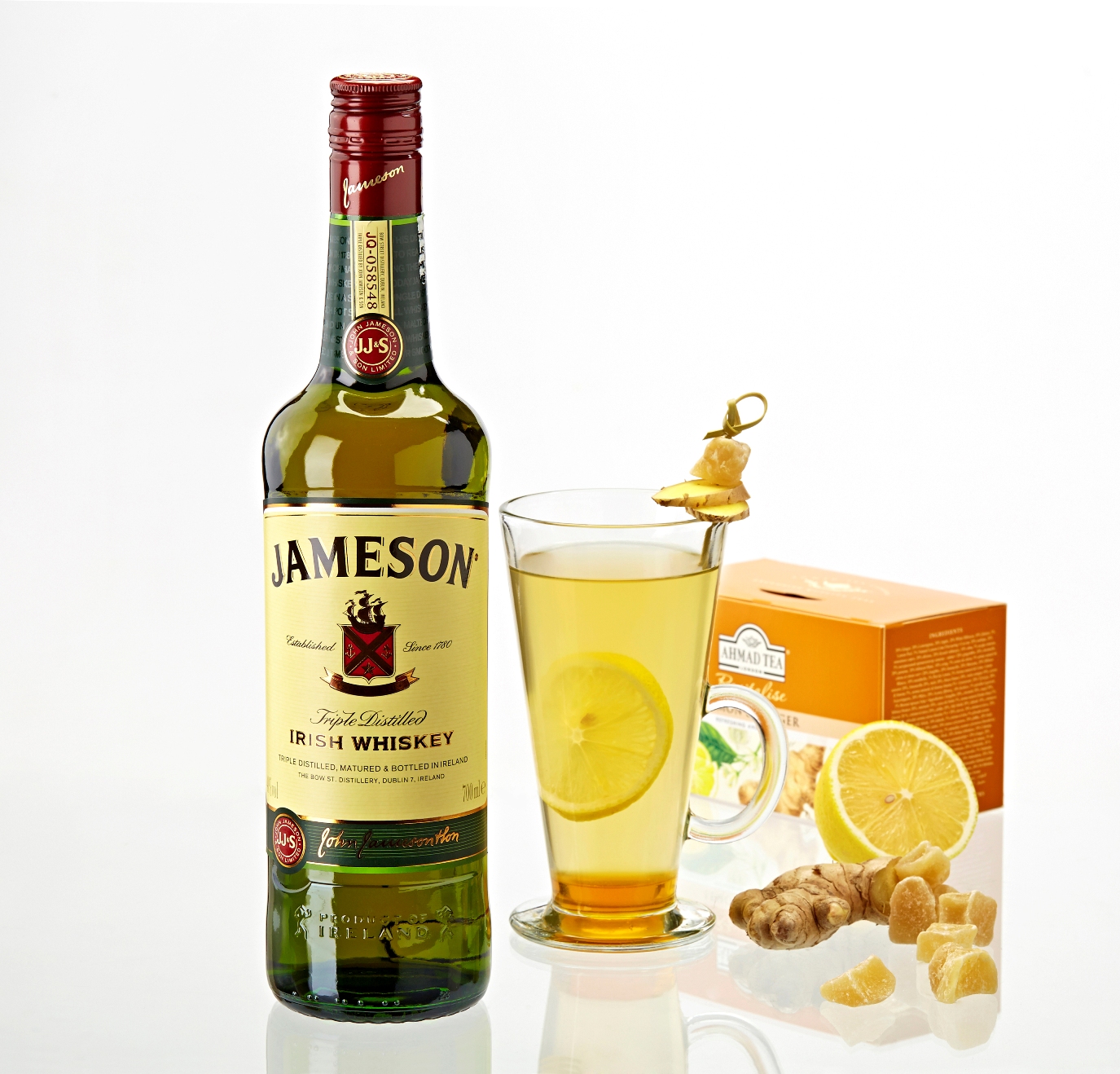 Do šálku nalijte odměřené množství Jameson whiskey, přidejte citrónovou šťávu a lžičku medu. Vše zalijte připraveným zázvorovým čajem. Na závěr šálek dozdobte kandovaným zázvorem. Dobrou chuť!
