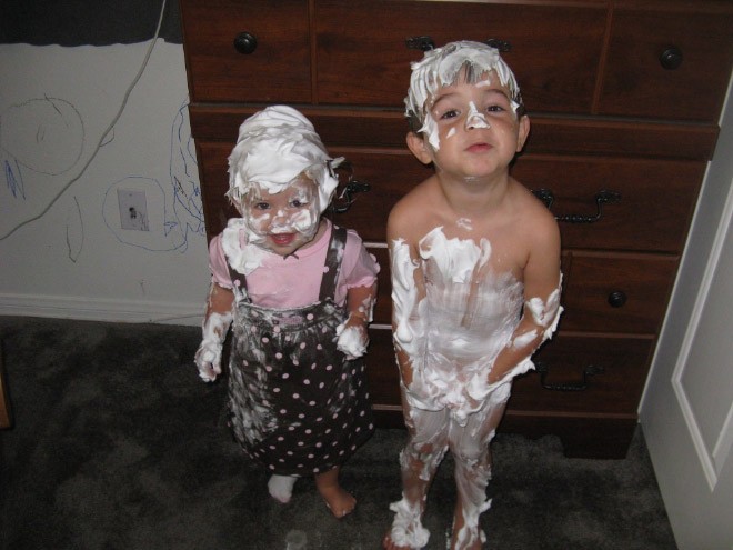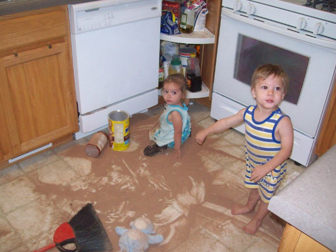 Anebo snad jo? Pravdou je, že když tohle nějaký malý nezbeda napáchá, tak j e jasné, že je to prostě živé dítě. Dá se předpokláda, že se v životě neztratí. Ale je to prostě masakr! Nechat takové barvy jen tak někde ležet? Tak to se vážně nevyplácí! Je neskutečné, jakou neplechu dokáží udělat takoví malí tvorové. A ještě z toho mají nehoráznou radost. Ovšem jen do chvíle, než přijdou rodiče a je z toho pořádný sekec mazec. Ale ruku na srdce, nebyli jsme přesně takoví?