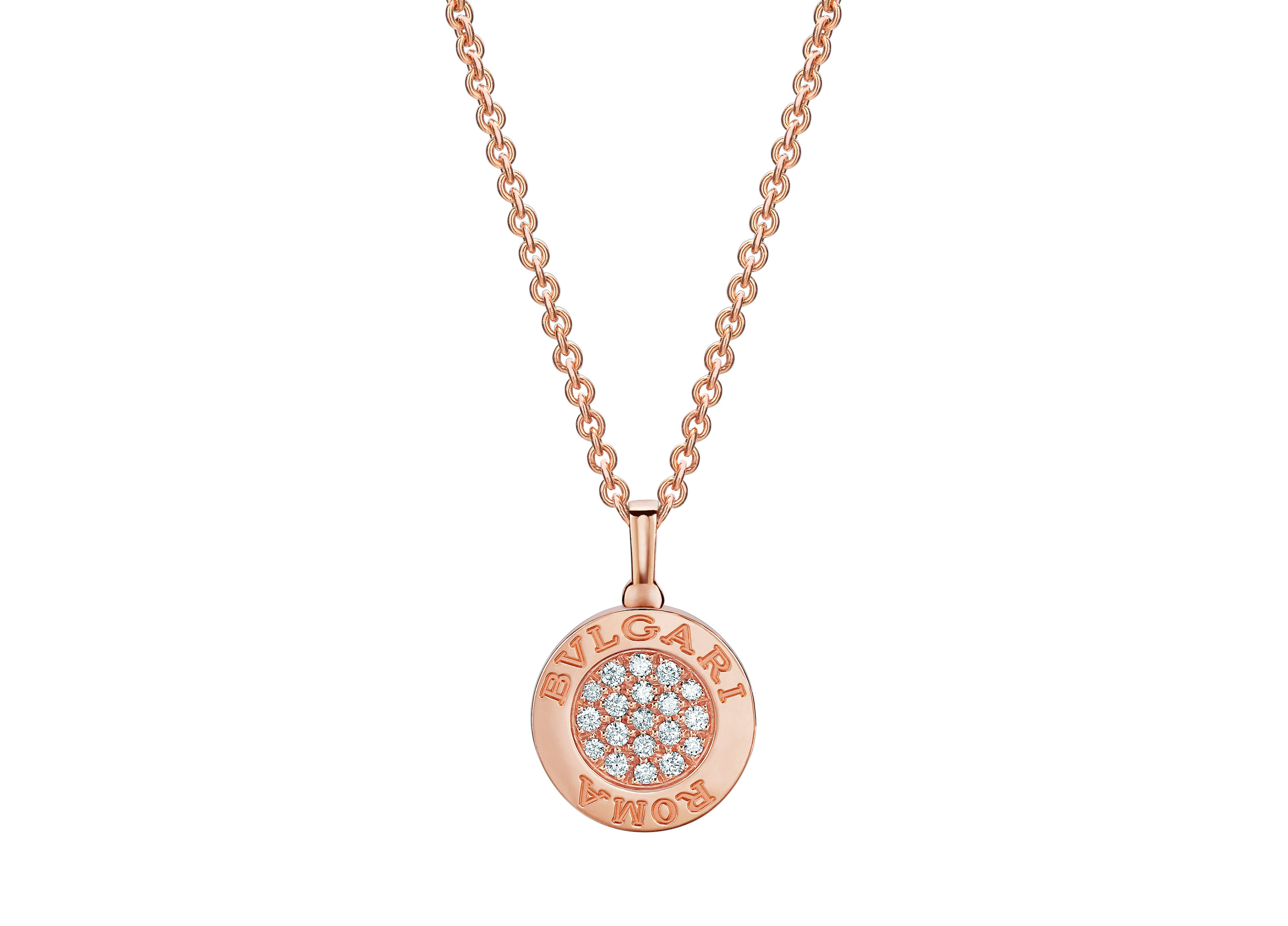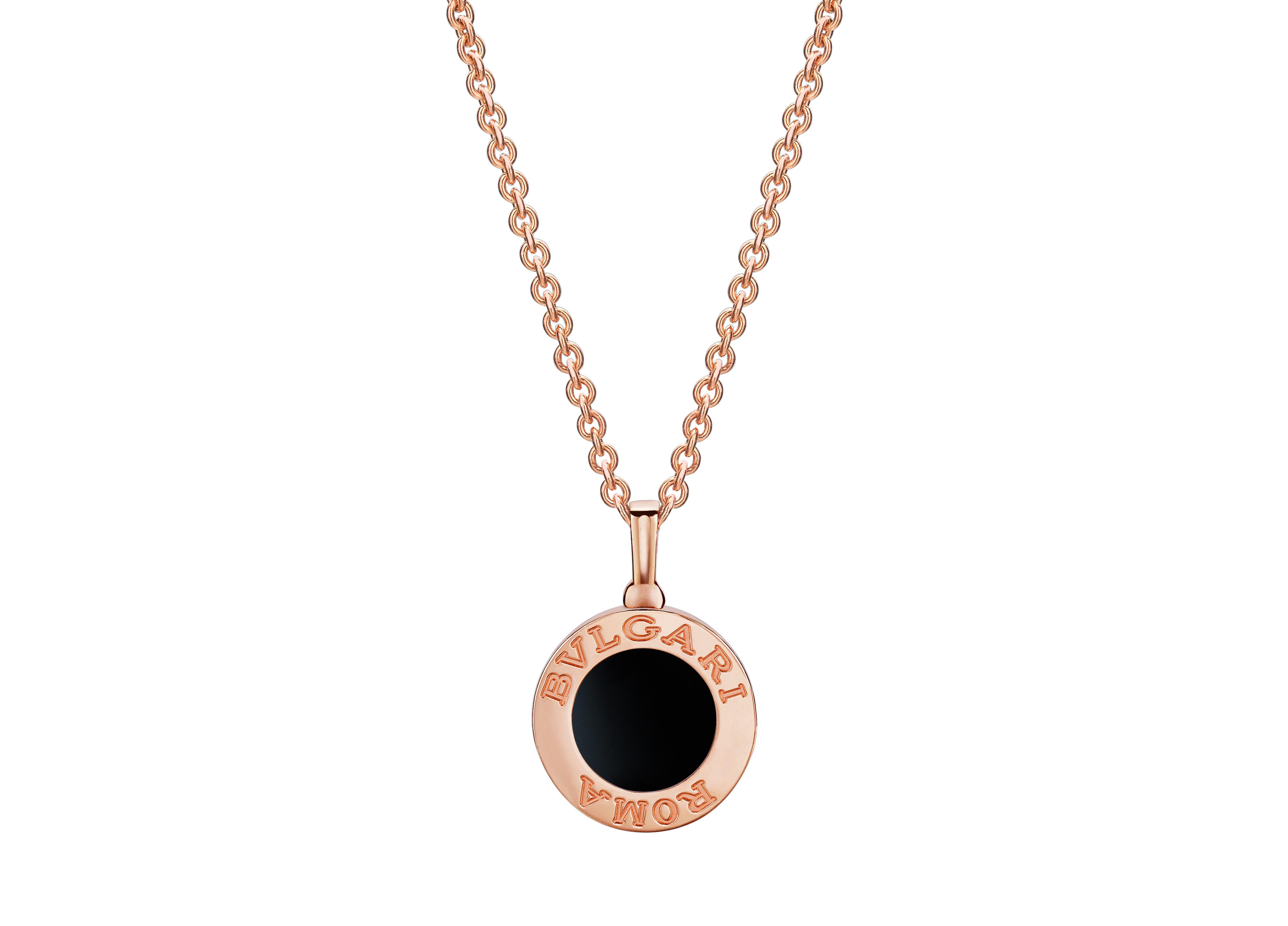 Nový náhrdelník provedený v 18kt růžovém zlatě je hravý a různorodý díky dvěma tvářím, které nabízí. Svůj outfit tak můžete doplnit černým onyxem, nebo slavnostními pavé diamanty. BVLGARI logo se zrodilo v roce 1934, při znovuotevření butiku BVLGARI na via Condotti. Rodina Bulgari chtěla zdůraznit vášeň a inspiraci historií a proto se rozhodla pro latinský přepis jména s „V“ namísto s písmenem „U“. Logo tak připomínalo staré latinské monumentální rytiny v Římě jako například bronzový nápis na fasádě Pantheonu. Inspirace logem pak nabrala konkrétní podobu v roce 1975, kdy byly představeny hodinky BVLGARI ROMA s vyrytým nápisem na lunetě. Velkolepý úspěch vedl v roce 1977 ke kolekci BVLGARI-BVLGARI s dvojitým logem po obvodu, které odkazovalo ke starým antickým mincím s podobiznou císaře ohraničenou rytinami zdůrazňující jeho moc a význam.