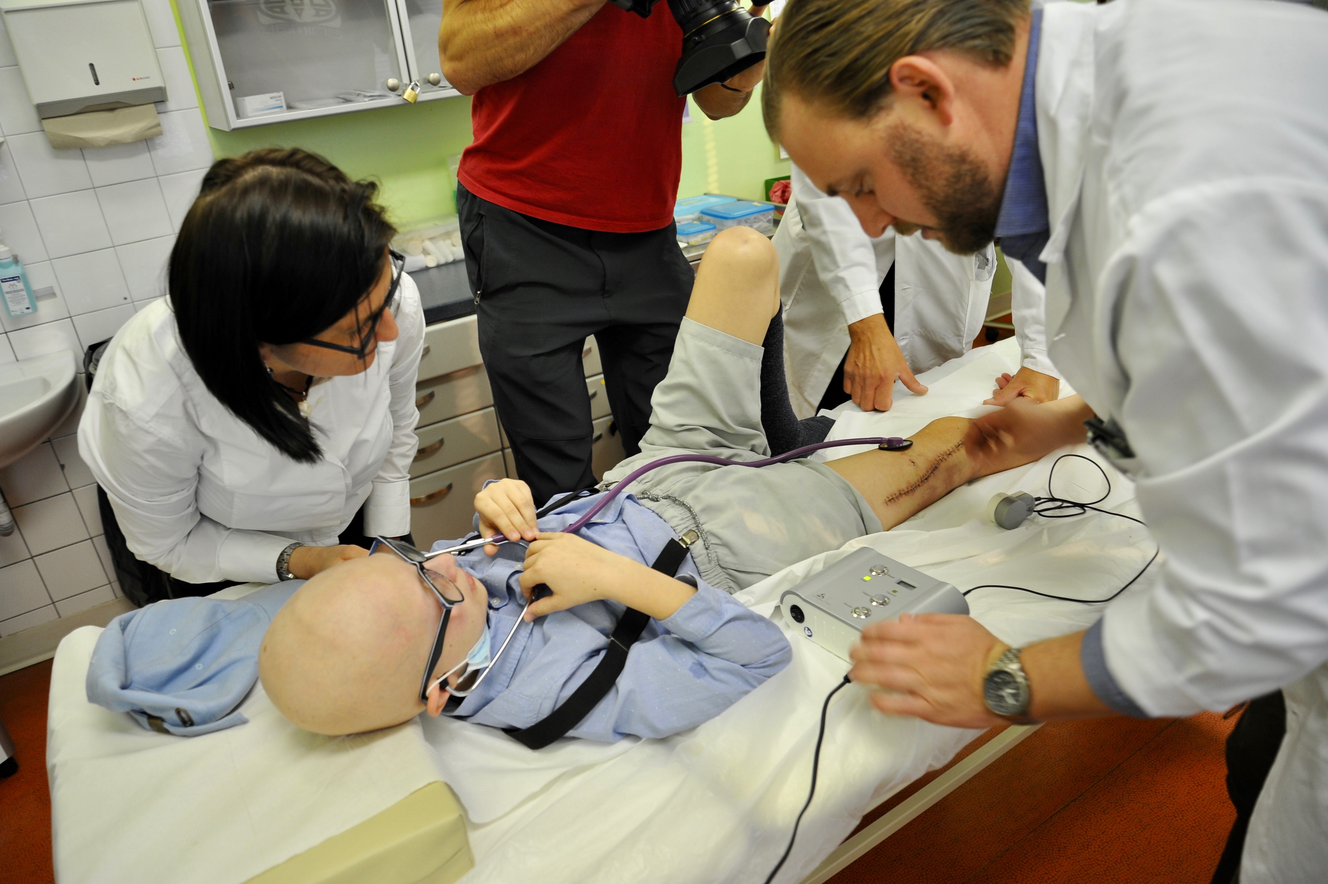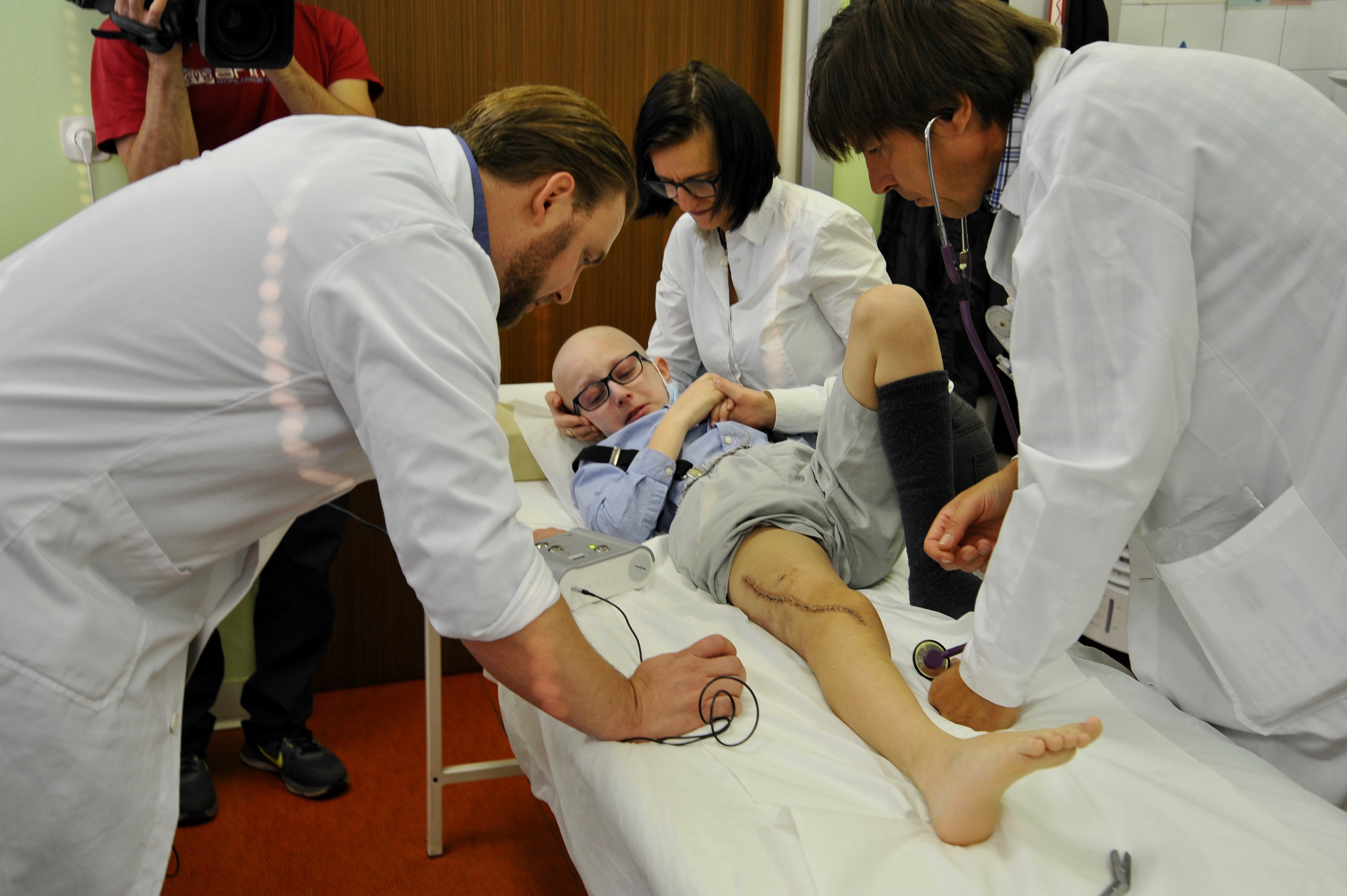 “Samuel trpěl zhoubým nádorem pravé stehenní kosti. Nádorem byla bohužel zasažená i epifýza, tedy oblast kosti bezprostředně naléhající na kloub, což neumožňovalo zachování původního kolenního kloubu.” Uvedl ke stavu malého pacienta před operací MUDr. Jan Lesenský z ortopedické kliniky NNB. “Alternativou amputace tak byla náhrada kosti tzv. „tumorózní endoprotézou”, doplnil MUDr. Lesenský.