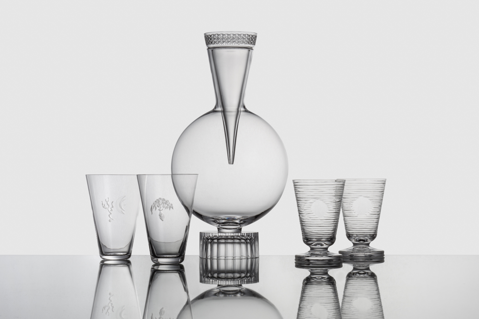 Nejnovějším přírůstkem v portfoliu této galerie jsou skleněné objekty Mii Doležalové, žákyně Ronyho Plesla. Tím prvním je skleněná, ručně broušená karafa na víno, kterou doplňují různé verze sklenic. Tento set dostal název Vnitřní krajina a jeho tvůrkyně k němu sama říká: Vnitřní krajina potřebuje ochranu, aby si zachovala svou křehkost.Proto je dominantním prvkem hrot symbolizující zbraň, která zároveň slouží jako trychtýř. Tím víno protéká a vytváří z momentu rituální obřad. A výběrem vína člověk sám doplní barevný akcent celého setu. Proto je u karafy respektována maximální průhlednost ve skle, díky které nejlépe vynikne odstín vína“.