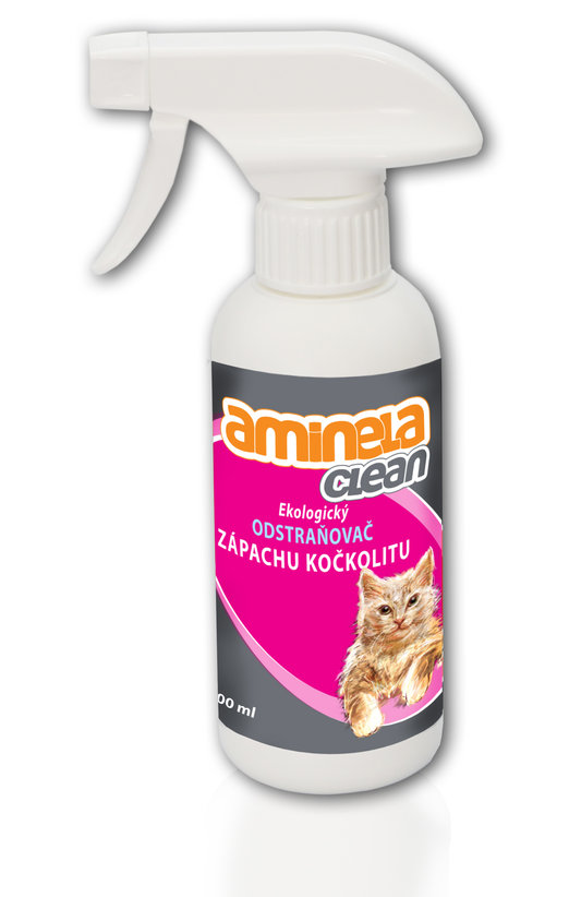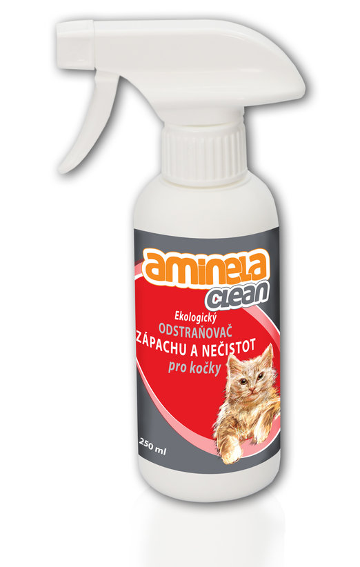 Aminela Clean – odstraňovač zápachu pro kočky – Efektivně odstraní zápach po moči, výkalech, zvratkách a podobně. Obsahuje bakterie a enzymy, které šetrně a účinně rozkládají organické nečistoty. Přípravek můžete aplikovat na textil, čalounění, koberce, podlahy, pelíšky i na zdivo. Přípravek nezanechává skvrny a má příjemnou vůni. Odstraněním zápachu se předchází dalšímu přeznačkovávání. K dostání na krmiva-pucalka.cz za 139 Kč.