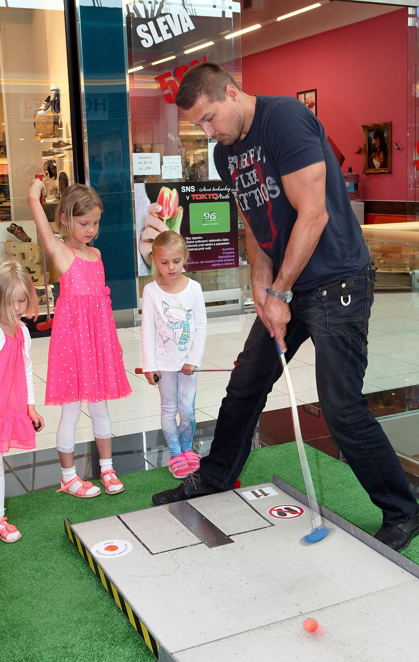 A ačkoli manipulace s minigolfovým náčiním vyžaduje poněkud větší jemnocit, než zápas v judu, sportovní talent v sobě nezapřel ani tatínek ani Sofinka s Elinkou. Starší Sofinka dokonce v Europarku vyhrávala nad všemi dospělými. „Neuveřitelně ji to jde. Některé dráhy zvládla hned na jediný ťuknutí a i na ostatních ji to šlo svěle,“ prozradil pyšný tatínek Petr a dodal „je to skvělý nápad, minigolf v obchodním centru. Když budeme v Praze, tak sem určitě ještě přijdeme. Holky to hrozně baví, takže my si budeme hrát a Romča může nakupovat“ „Ne ne, hrát si budu já a ty nakupuj,“smála se Romana a prozradila nejbližší plány. „Jako každé léto zůstáváme v Čechách, buďto na chatě na Orlíku, nebo u rodičů v Rodově. V srpnu jedou holčičky na tábor a letos poprvé i Elinka. Moc se těší, i když ji jsou teprve čtyři roky, ale jedou se školkou, do které chodila i Sofinka, takže se všichni navzájem znají. Stýskat se asi bude spíš nám,“ přiznala s úsměvem a pobavila nás historkou o své milované babičce. „Je jí už 92 let a má slabé srdíčko. Před pár dny nás pořádně vystrašila, ráno ji mamka nemohla probudit a pak ani záchranáři. Babička nás ale všechny pěkně převezla, musím se tomu smát pokaždé, když si na to vzpomenu. Když ji totiž v nemocnici konečně probrali, tak se na ně usmála a řekla „to jsem se ale krásně vyspala.“