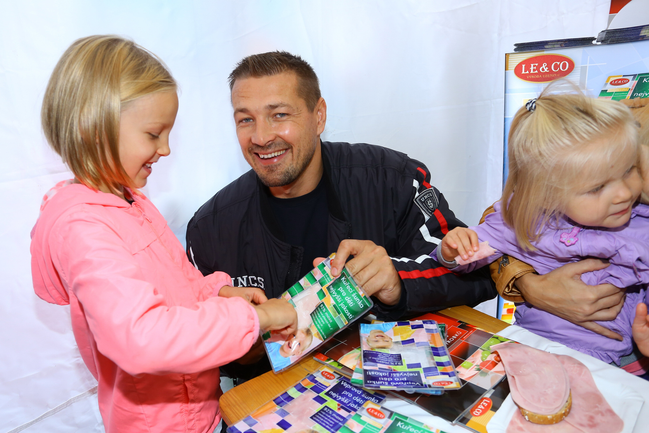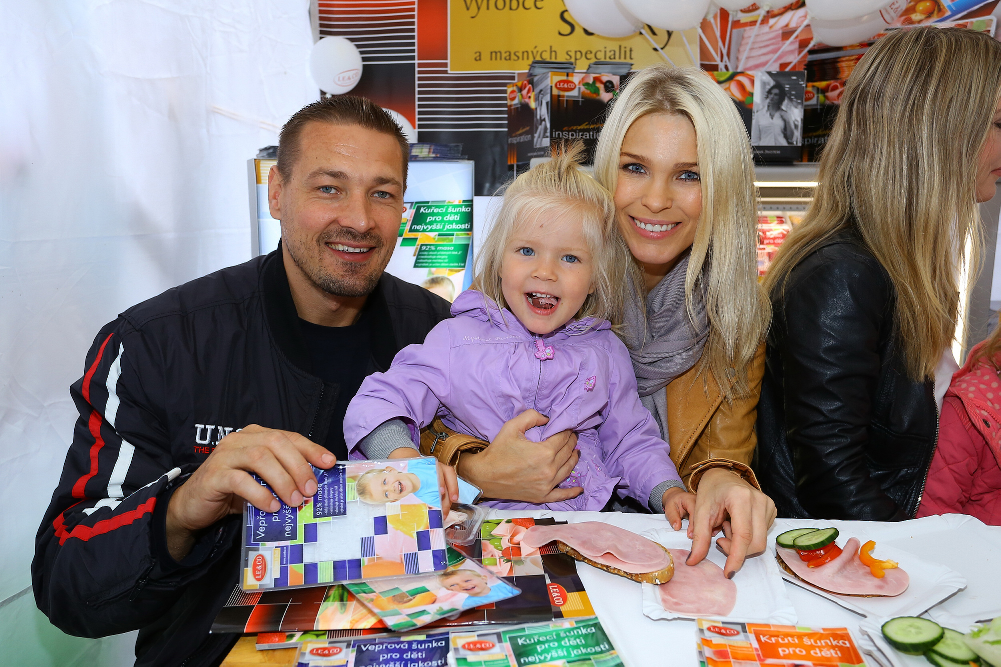 Starší dcera Romany a Petra Jáklových se letos stala žákyní první třídy základní školy. „Sofinka chodí na normální státní školu. Sice nám říkali, ať ji dáme na výběrovou, že je hodněšikovná, ale nakonec jsme to neudělali. Jednak proto, že takhle bude mít spolužáky a kamarády v místě, kde bydlíme, a také z toho důvodu, že na dítě je až přehnaně svědomitá a vyšší náročnost by ji mohla stresovat,“ vysvětlila Romana během výroby obloženého chleba a nad táckem s rajčaty a Krůtí šunkou pro děti ještě prozradila, jak to u nich chodí s přípravou svačiny: „Tak k tomu už mě Sofinka nepustí. Jen jí rozkrojím housku a ona už si ji sama namaže a obloží. Jde jí to tak dobře, že bych to ani já nezvládla líp. Zato ale umím bezkonkurenčně padat ze schodů,“ vysvětlila Romana, proč se podpírá berlemi. „ Zakopla jsem tak geniálně, že jsem si utrhla meniskus a čeká mě operace. Mám kolem sebe v rodině i mezi kamarády hodně kaskadérů, takže se mi teď smějou, že mě prý naučí padat.“ Jáklovi jsou vůbec veselá kopa. Při soutěži o nejlépe obložený chleba všechny pobavila malá Elinka, která si vyrobila šunku se šunkou… celý balíček šunky vyskládala na malý plátek chleba, ale nakonec i ten nahradila dalším voňavým balíčkem od firmy Leco. „Holkám se na téhle šunce líbí i ty veselé barevné obaly. Domů ji ale samozřejmě nekupujem proto, že je hezká, ale že je prostě vynikající,“ směje se maminka Romana.
