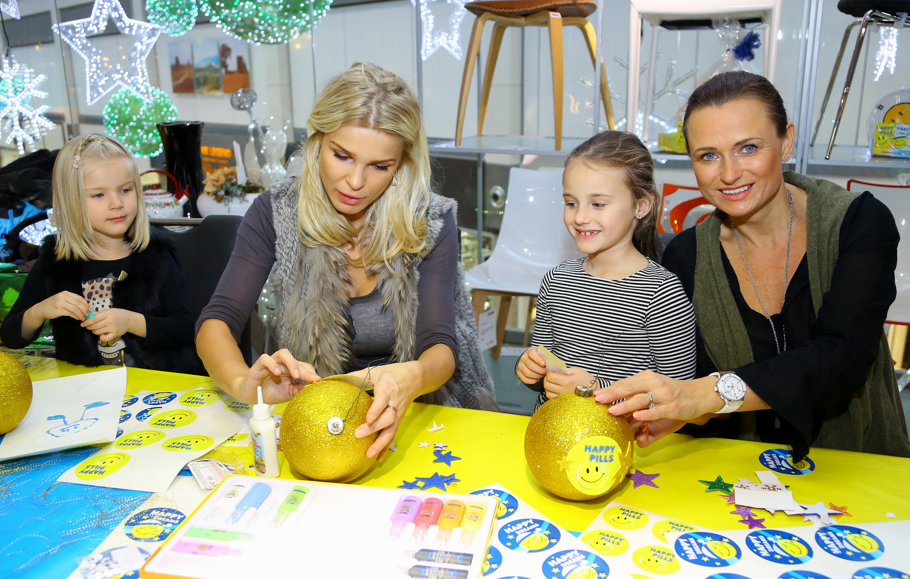 „Stalo se to před pár lety. Zrovna jsme se doma rozhodli, že budeme péct, když mě kamarádka narychlo pozvala do divadla na představení, které jsem chtěla vidět, takže jsem neodmítla. A můj muž se rozhodl, že mě mezitím překvapí a napeče. Pustil se do toho společně s mým tátou a všechno probíhalo fantasticky až do momentu, kdy začali obalovat vanilkové rohlíčky. Místo moučkového cukru totiž manžel použil na pohled stejnou, ale chuťově zcela jinou surovinu. Už si přesně nevzpomínám, co to bylo, buď jedlá soda nebo škrob. Každopádně byly rohlíčky absolutně nepoživatelné…“ zavzpomínala Jana, kterou prý ale podobné situace nechávají naprosto klidnou. Co tedy dokáže půvabnou moderátorku rozhodit? „Když na mě mluví víc lidí najednou a něco po mě chtějí. Což se často stává doma. To potom praštím do stolu a všichni se zklidní. Musím ale říct, že čím jsem starší, tím méně věcí mě rozhází. Když nejde o život, je fajn řešit věci v klidu. A pokud k tomu mohou místo léků na předpis pomoci Happy pills, tak to jedině schvaluji.“ Na adventním mejdánku se ale krom žlutých pilulek pro dobrou náladu představily také pilulky modré, Happy dreams, napomáhající klidnému spánku. Na přetřes tedy přišlo téma probdělých nocí. Pokud ovšem čekáte historky o celonočních flámech, budete zklamaní. „Moje probdělé noci souvisejí s dětmi. Stejně jako asi u většiny maminek,“ zkonstatovala Jana a dodala: „Teď, když povyrostly, je to samozřejmě mnohem lepší… A když někdy nemůžu usnout, uspávám se čtením. Pokud jde ale o přírodní prostředky, které napomáhají v noci klidnému spánku nebo naopak přes den mírní stres, dívám se na ně velmi pozitivně. Já sama, když mám občas stresové období, sáhnu po takovémto přírodním přípravku a opravdu mi pomůže.“ V obchodě Home art na pražském Zličíně, kde se předvánoční setkání slavných maminek konalo, si pak dámy společně se svými ratolestmi vyzkoušely výrobu vánočních ozdob.