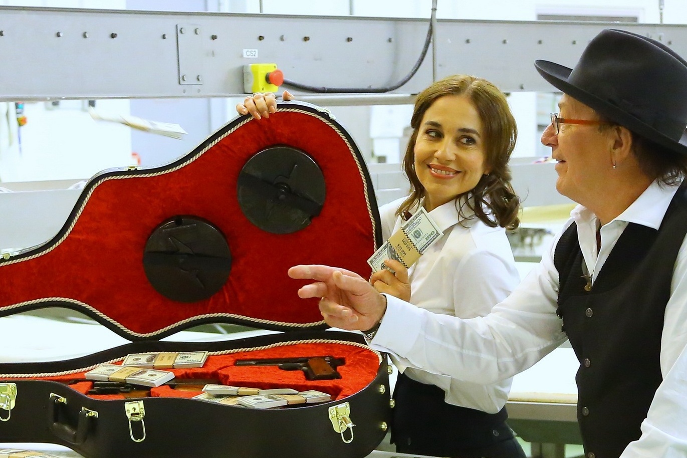 Společně s Petrem Jandou tak pózovali například v limuzíně, ale i přímo ve výrobně oblíbených masných produktů. Původně si měla na drsnou femme fatale v mafiánském outfitu zahrát Petrova dcera Marta. „Nakonec jí do toho přišly nějaké povinnosti, ale s Míšou Kuklovou jsem se setkal velmi rád,“ prozradil leader kapely Olympic během přestávky, kdy se oba hlavní protagonisté občerstvovali stylovým pohoštěním.