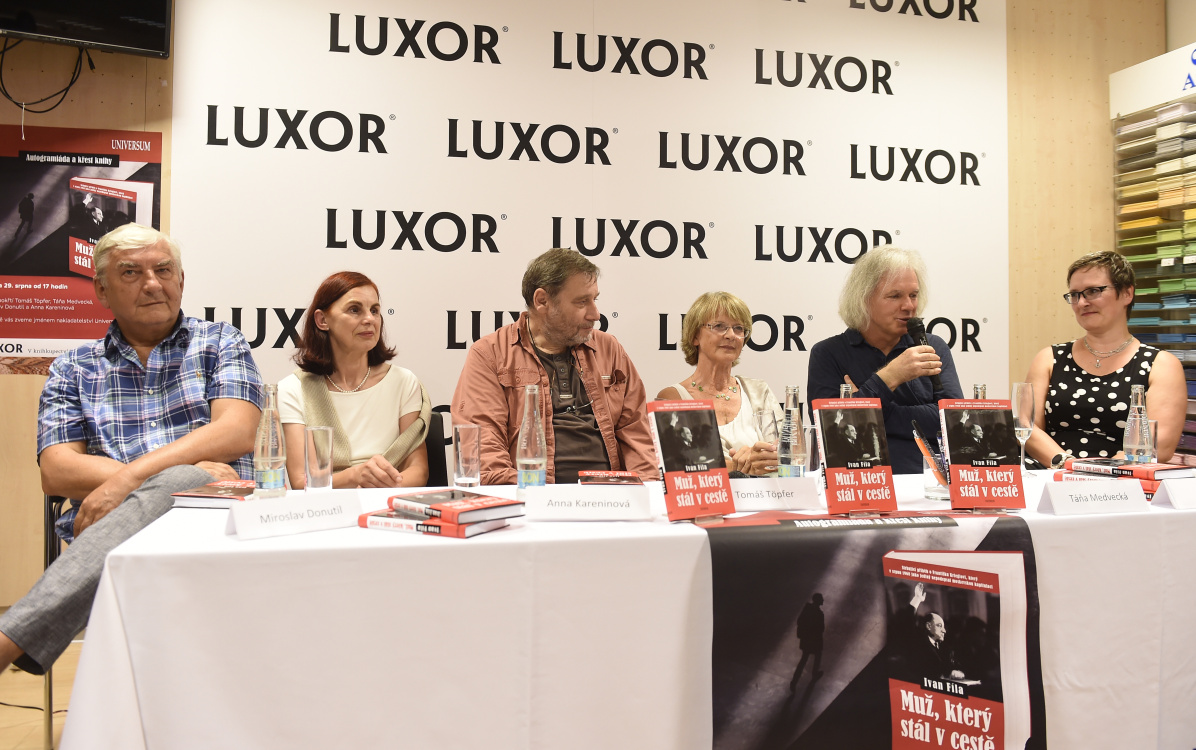 Kmotry knihy byli v Paláci knih Luxor na Václavském náměstí v Praze Tomáš Töpfer, Táňa Medvecká, Miroslav Donutil a Anna Kareninová.