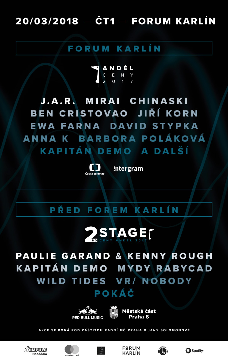 Unikátní bude také program, který se na 20. 3. chystá přímo před Forem Karlín a bude zdarma otevřený široké veřejnosti. Na 2nd stage tu vystoupí další kapely a interpreti, kteří mají letos šanci získat sošku Anděla, i výrazná hudební jména loňského roku. Nebudou zde chybět nominovaní Mydy Rabycad, Pokáč, Kapitán Demo či Wild Tides, které doplní VR/Nobody a hiphopeři Paulie Garand s Kennym Roughem. „Andělé letos prošli řadou změn a oproti loňskému komornímu ročníku výrazně vyrostou. Opět jsme se ale drželi toho, že jsou to ceny, které by měly patřit především samotným muzikantům,“ dodala Lucka Hájková.