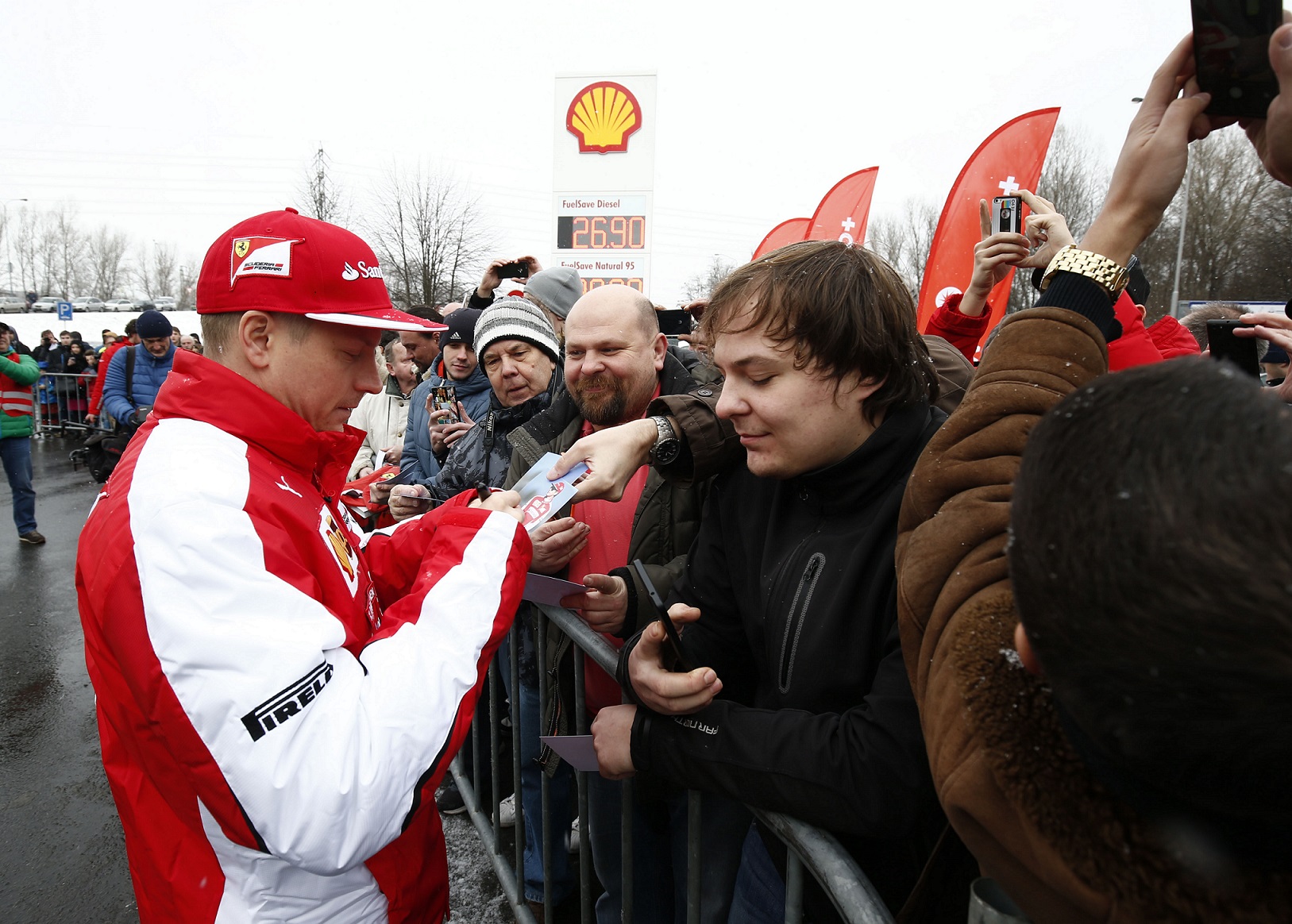 Finský jezdec přijal pozvání společnosti Shell a dopřál tak unikátní zážitek svým skalním příznivcům setkat se s ním naživo na čerpací stanici Shell v Ostravě na Místecké ulici. Zde si totiž Kimi Räikkönen, mistr světa závodů formule 1 z roku 2007 a současný pilot stáje Scuderia Ferrari, vyzkoušel práci nádvorní obsluhy. Do vybraných vozů natankoval výkonné palivo Shell V-Power Nitro+, které je svým složením z 99 % shodné s palivem používaným týmem Scuderia Ferrari při závodech mistrovství světa formule 1. Kimi pak nadšeným fanouškům ochotně rozdával své autogramy. „Návštěvu České republiky jsem si velice užil, stejně tak možnost setkat se se svými fanoušky před začátkem nové sezóny. Jsem nadšen, kolik jich dnes přišlo na čerpací stanici Shell. Na nadcházející sezónu se skutečně těším a věřím, že dosáhneme ještě lepších výsledků díky výkonným palivům společnosti Shell,“ uvedl Kimi. „Je nám ctí, že Kimi Räikkönen přijal naše pozvání, a fanoušci se tak exkluzivně mohli osobně setkat s hvězdou formule 1. Kimimu přejeme hodně štěstí do nadcházející závodní sezóny a věříme, že mu naše výkonná paliva Shell pomohou k řadě vítězství na trati,“ řekl Petr Pražský, ředitel provozu čerpacích stanic Shell ve střední a východní Evropě.
