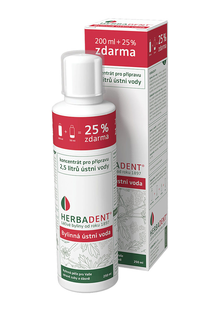 „Ústní vody s rostlinnými extrakty mají výborné protizánětlivé a rovněž desinfekční účinky. Jsou vhodné u pacientů s gingivitidou (zánětem dásní) a parodontitídou (parodontózou). Rovněž u pacientů po chirurgických zákrocích, u pacientů se snímacími náhradami nebo fixními rovnátky může ústní voda pomoci,” říká MUDr. Michal Karas. Bylinné ústní vody HERBADENT s obsahem bylinných extraktů a silic velmi účinně pomáhají redukovat mikrobiální biofilm a jsou vhodné na dlouhodobé užívání.