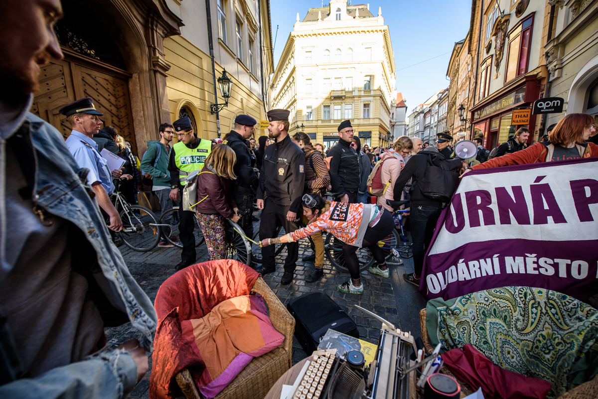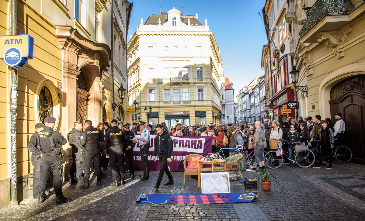 V rámci demonstrace byl zablokován turistický provoz v Celetné ulici, v níž vznikly improvizované pokoje, kde probíhal kulturní program Rádia Tuleň. Do vysílání se zapojili i turisté, jeden z nich dokonce akci podpořil a označil za důležitou. Blokádu organizotáři rozpustili po pohrůžce násilím ze strany policie.