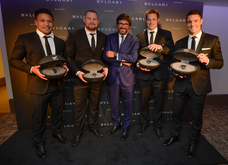 Společnost Bulgari a ragbyový tým All Blacks již několik let spojuje partnerství vyznávající společné hodnoty jako touha po vítězství a dokonalosti. Značka Bulgari, která je oficiálním sponzorem týmu All Blacks, při příležitosti začátku ragbyového mistroství světa ocenila nejdéle hrající hráče a vedení legendárního novozélandského týmu darem v podobě upomínkové edice hodinek Octo All Blacks.