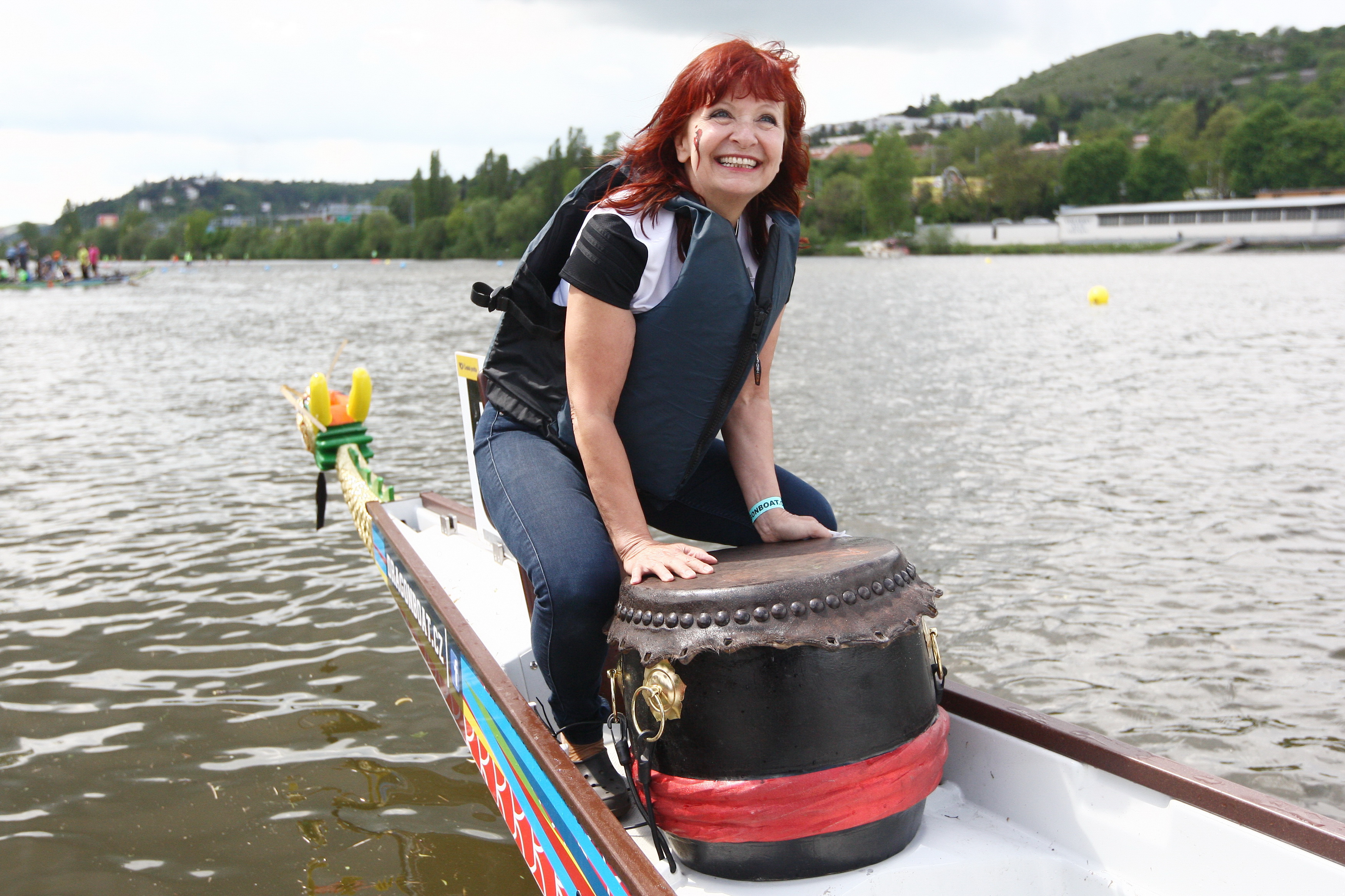 Bubnování je jistě hezká a potřebná věc na dračí lodi, ale co vyměnit buben za veslo? „Já bych si sice vyzkoušela i pádlování, ale jelikož jsem párkrát slavila s dětskou posádkou prvenství, nechtějí mě k němu pustit a vždycky skončím u bubnu. Ale co není, může být třeba za rok. Rozhodně se tomu bránit nebudu,“ s úsměvem vysvětlila Ljuba, kterou doprovázel coby dvorní fotograf její manžel, spisovatel Ondřej Neff.
