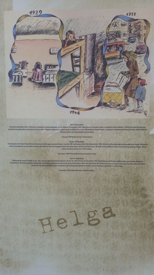 Výstava představuje kresby Helgy Weissové – Hoškové, která byla jako židovské dítě během nacistické okupace vězněna v terezínském ghettu. Dále prošla několika koncentračními tábory včetně Osvětimi a Mauthausenu, kde byla osvobozena. Během svého tříletého pobytu v Terezíně vytvořila více než sto kreseb, které zachycují život v ghettu dětskýma očima. Jejich výběr si můžete prohlédnout na výstavě zapůjčené Památníkem Terezín, která bude v průjezdu domu na Klatovské 19 k vidění pouze od 10:00 do 12:45 a od 14:00 do 17:00 hodin.