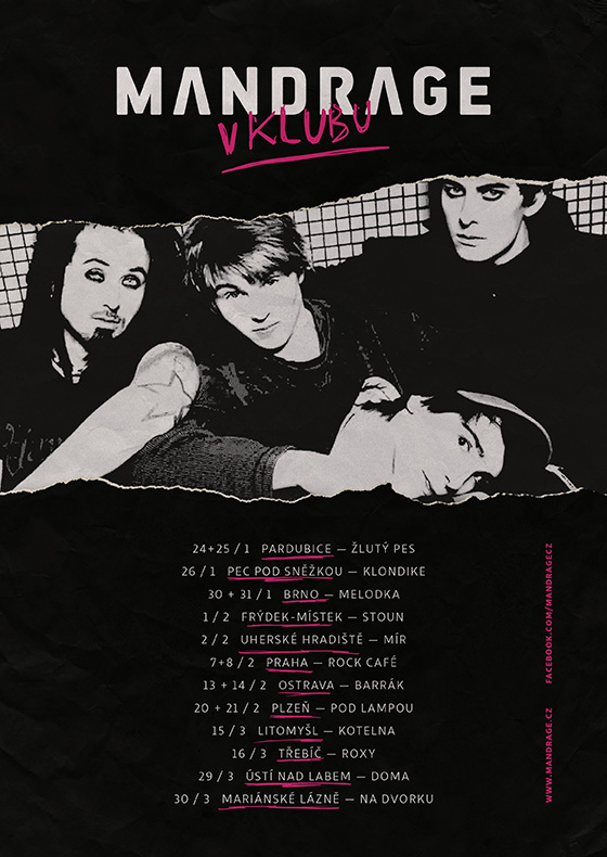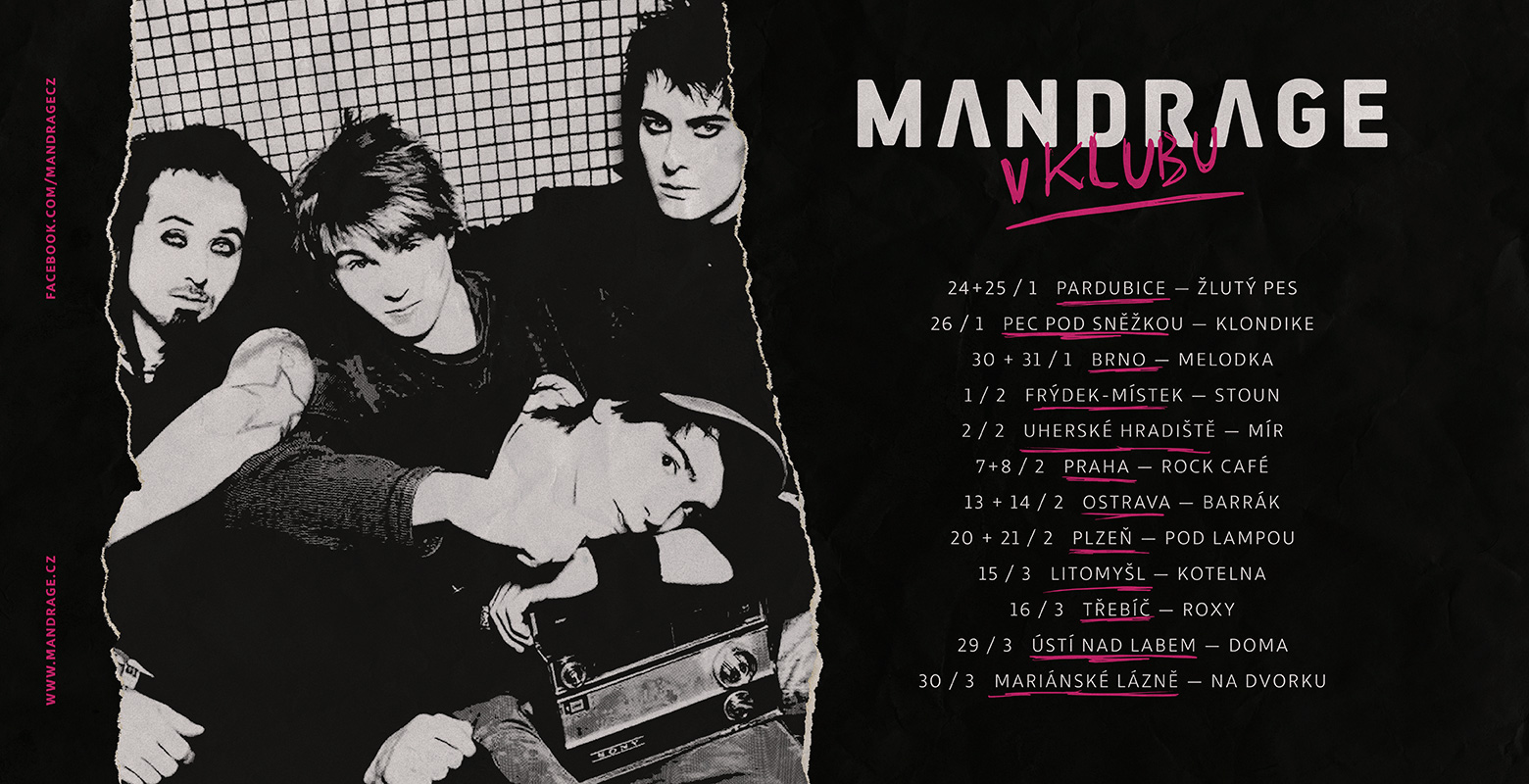 Klubové turné Mandrage odstartují 24. ledna v pardubickém klubu Žlutý pesa následně čeká kapelu dalších šestnáct koncertů ve dvanácti městech, které mají být nostalgickou připomínkou kapelních začátků.„Máme tu zkušenost, že čím menší prostor, tím více energie. Jak je někde málo místa, velký horko a spousta natěsnaných lidí, často vznikne mnohem speciálnější atmosféra než v nacpaném sále velkého kulturního domu,“ podotýká klávesista. V Praze se kapela svým fanouškům představí 7. a 8. února, kdy vystoupí v Rock Café.