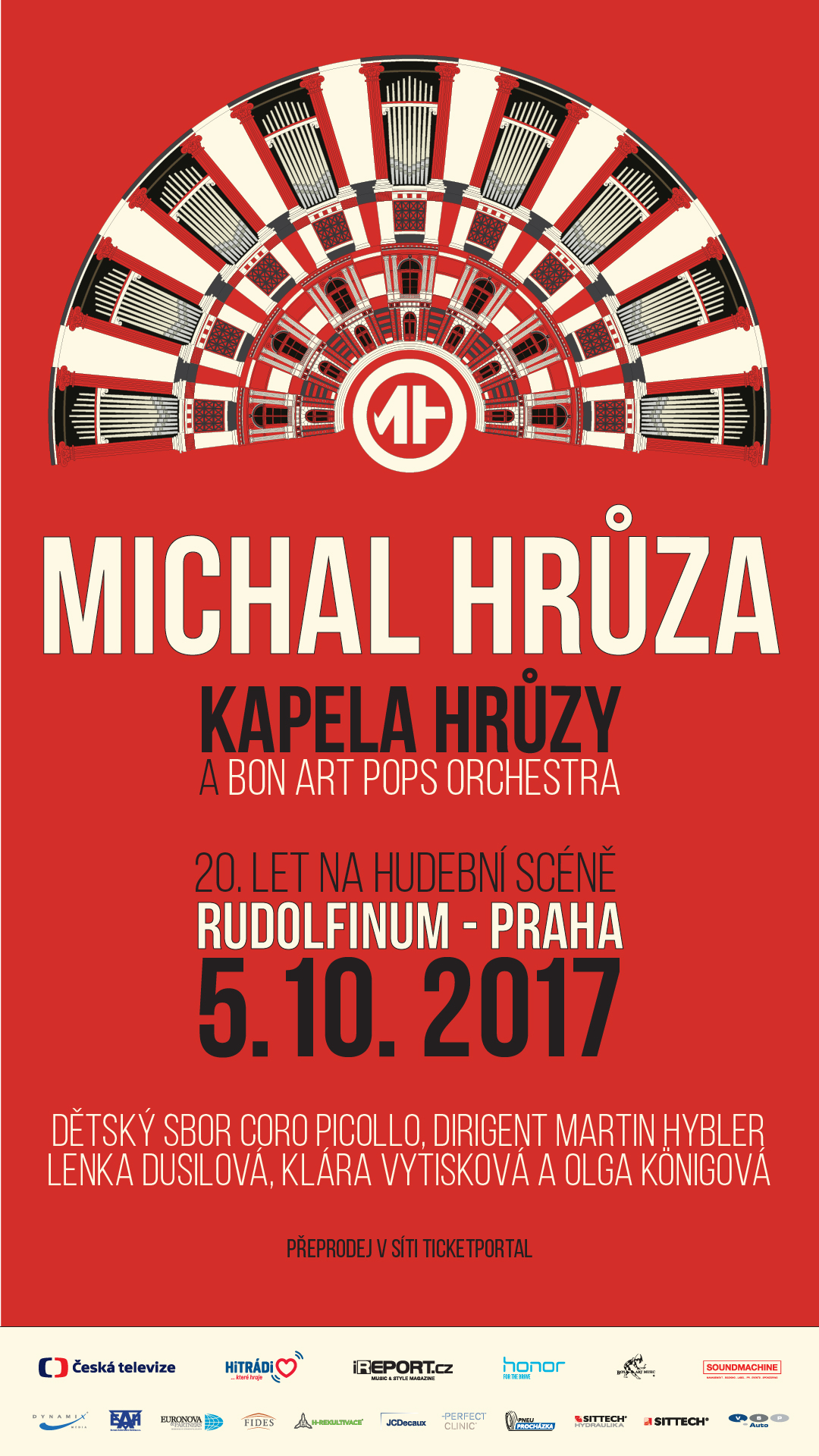 Koncert v Rudolfinu začne ve 20:30 a ojedinělý koncept slibuje neopakovatelnou atmosféru a silný zážitek. Na jediném pódiu stane 51 členek Bon Art Pops Orchestra, 50 dětí z Coro Piccolo, Michal Hrůza s Kapelou Hrůzy a průběžně spolu s nimi hosté koncertu – zpěvačky Lenka Dusilová, Klára Vytisková a Olga Königová, které si s Hrůzou a hudebníky zazpívají duety. Po koncertu v Rudolfinu vyrazí Michal Hrůza s kapelou na první – podzimní – část turné po kulturních domech a klubech, na kterém představí nové album Sám se sebou. V roli supportu pojede kapela Ille Olgy Königové. Druhá část tour proběhne na jaře 2018 – v březnu a dubnu.