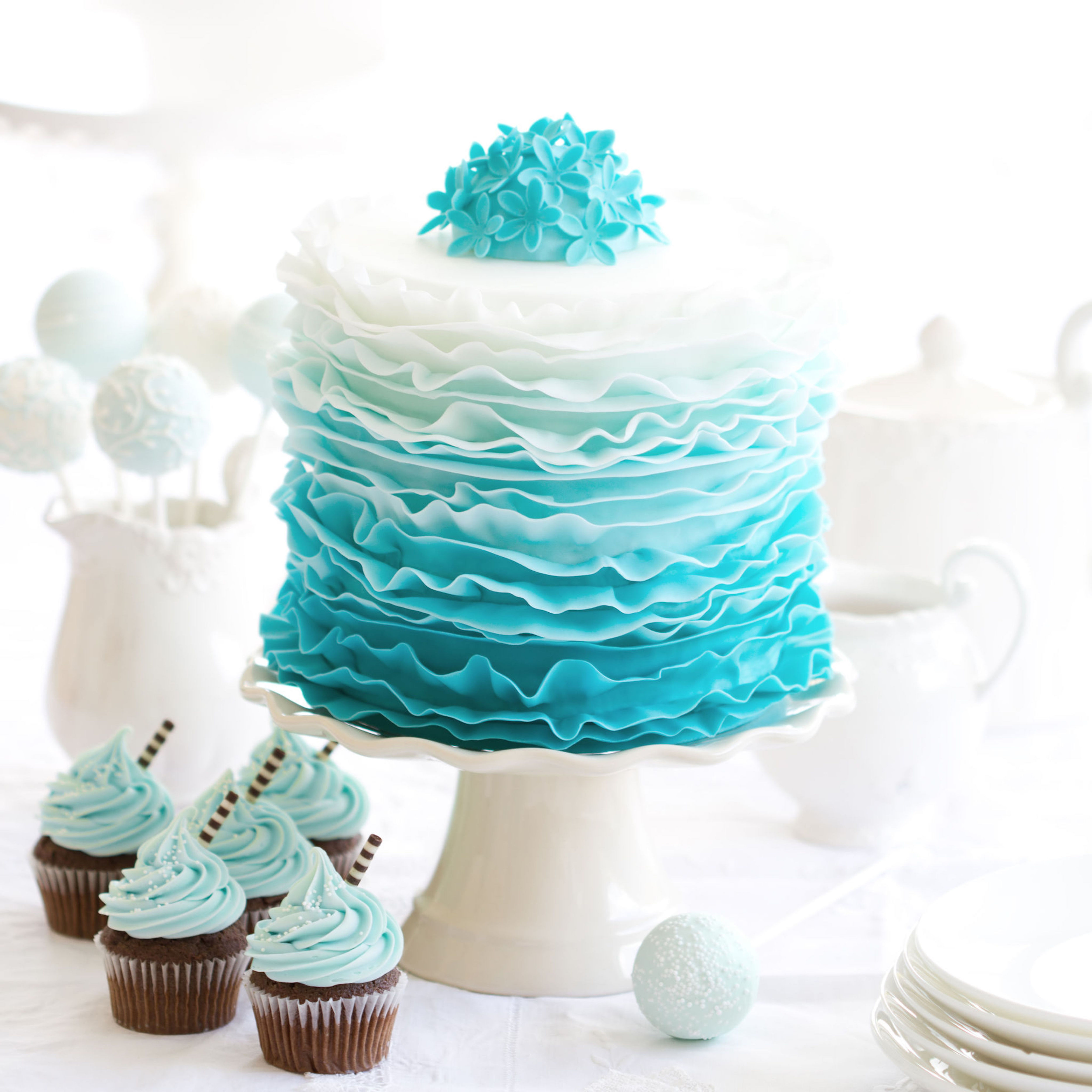 - 45305828 – ombre ruffle cake on a dessert table